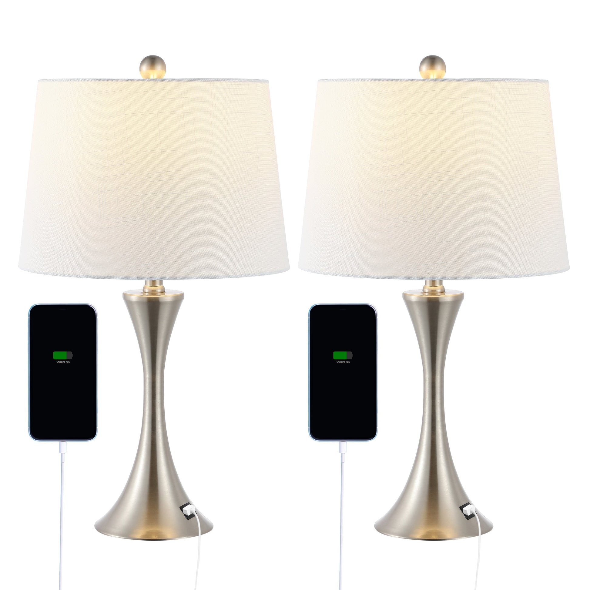Makena 22.75 Modern Glam Iron Hourglass LED Table Lamp with USB Charging Port, (Set of 2) by JONATHAN Y