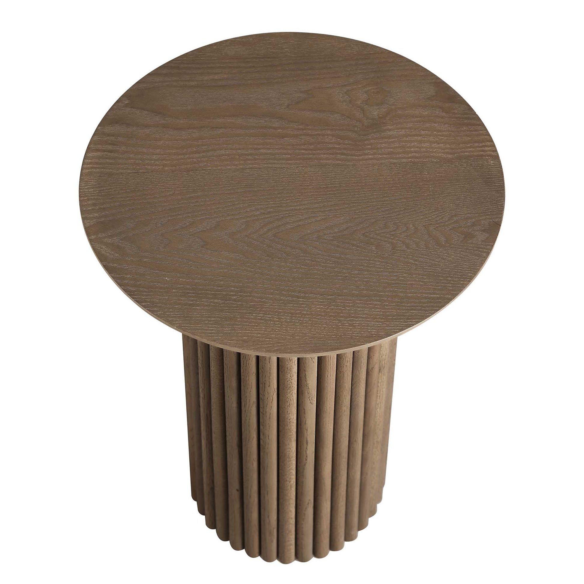 - Featuring fluted base made from solid oak, the Maru Side Table would be an interesting sculptural accent piece.