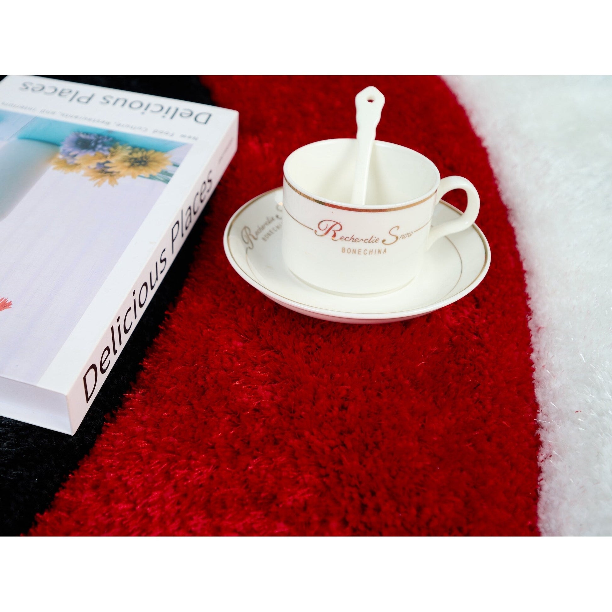 This contemporary designed area rug is constructed from 100% Polyester with a cotton backing. It features a machine made, power loom construction. This soft, shag rug will be the perfect enhancement to your living space.