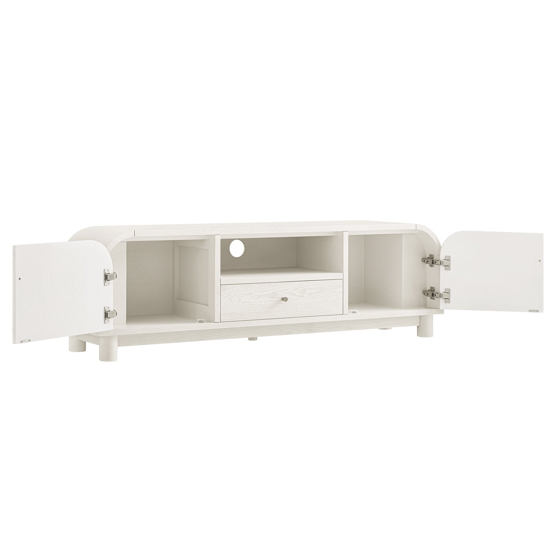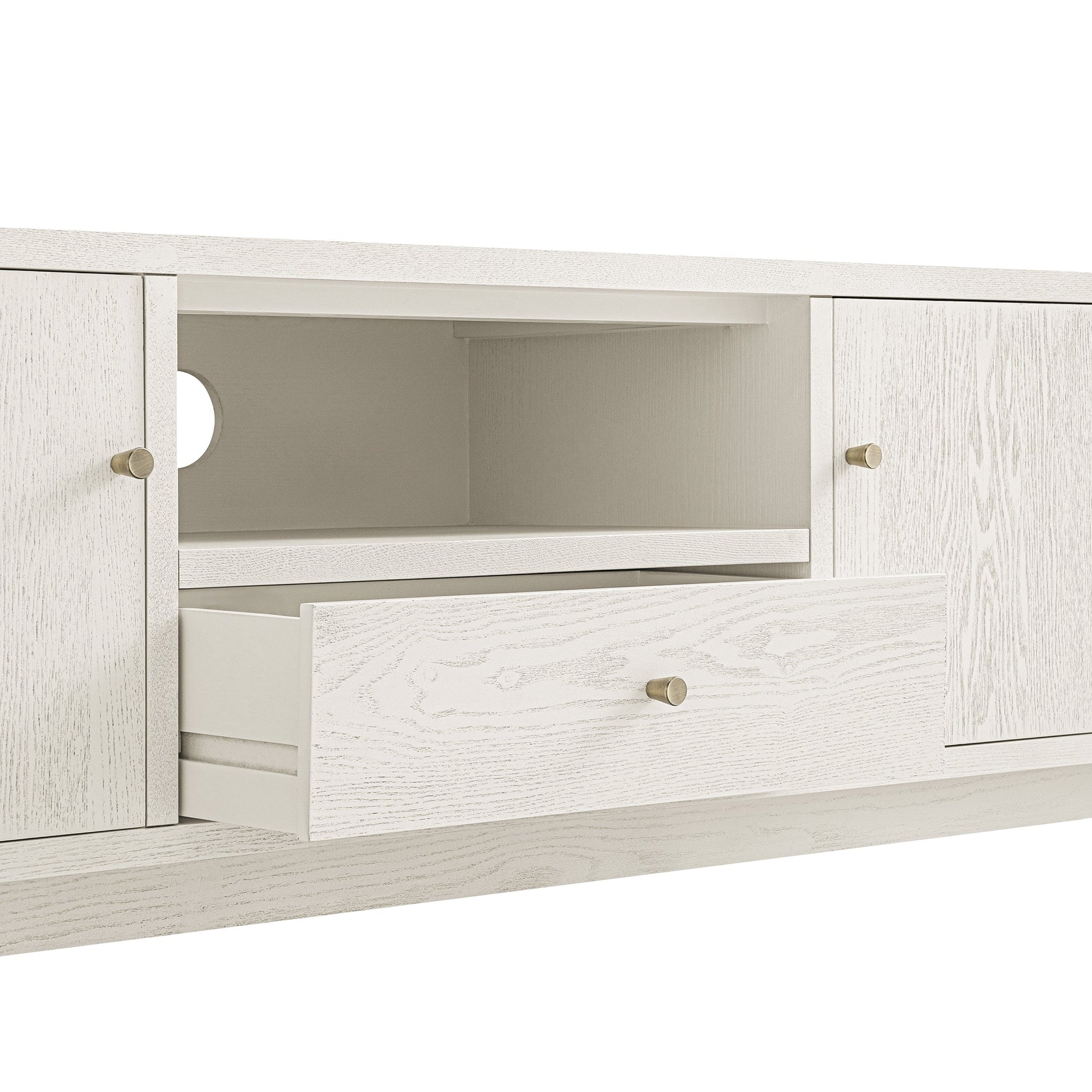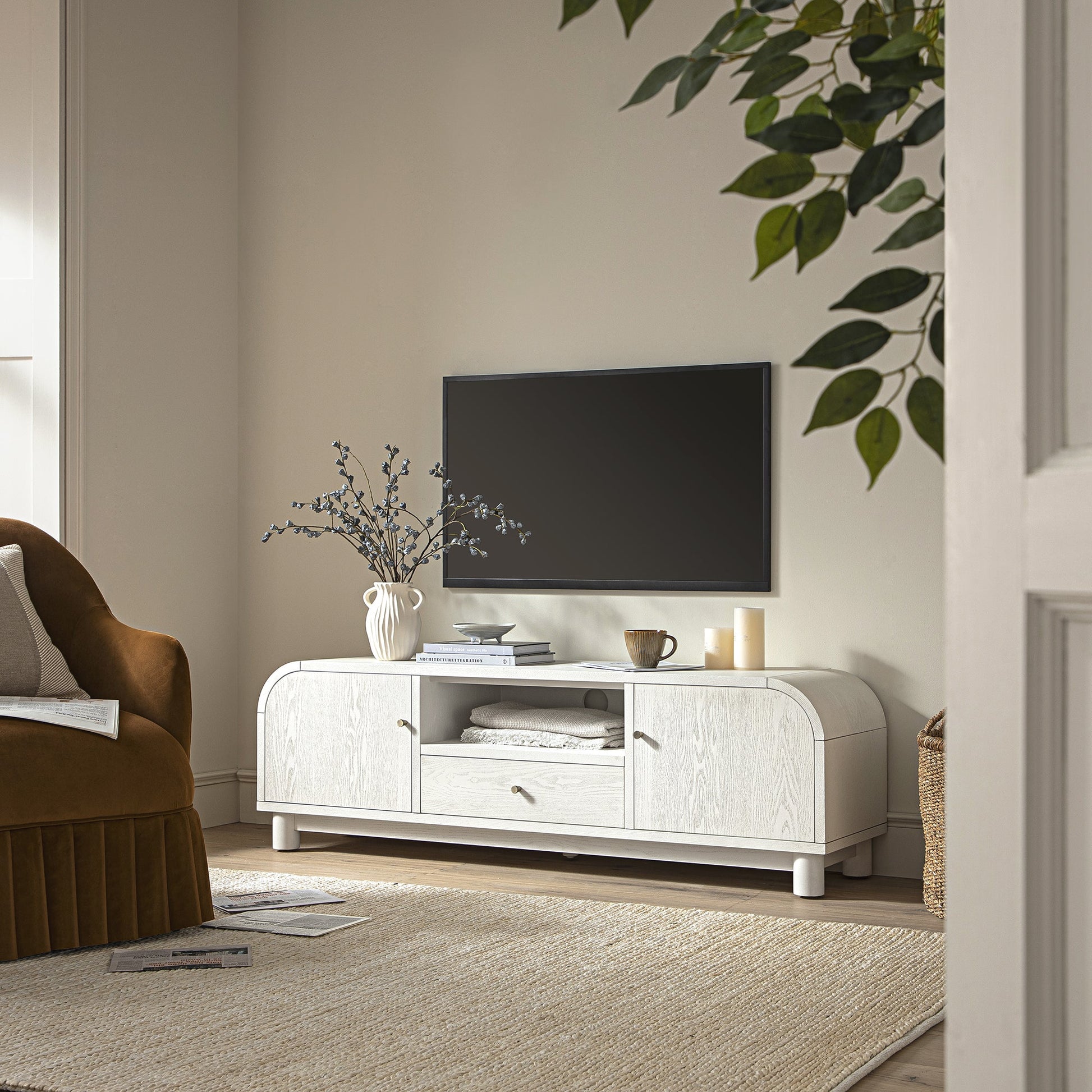 - Complete the look: Pictured with our Maude TV Unit is our Calliope Skirted Armchair in Cinnamon Velvet and our Aurora Hand Braided Cream Jute Rug