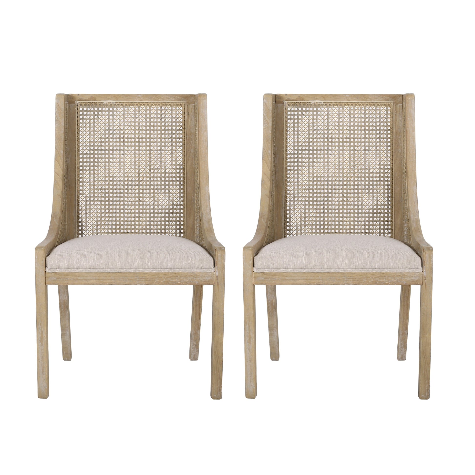 Maurers Cane and Wood Upholstered Dining Chairs (Set of 2) by Christopher Knight Home