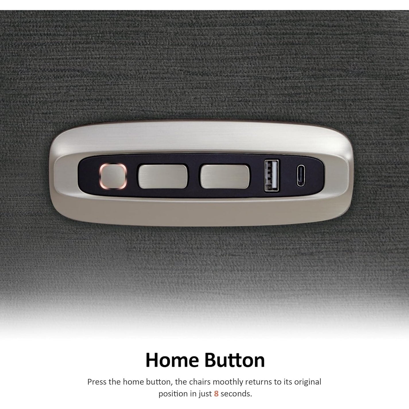 - User-Friendly Controller. Press the home button, and the chair smoothly returns to its original position in just 8 seconds. The dual USB&Type C charge ports on armrest mean that any phone or pad is applicable