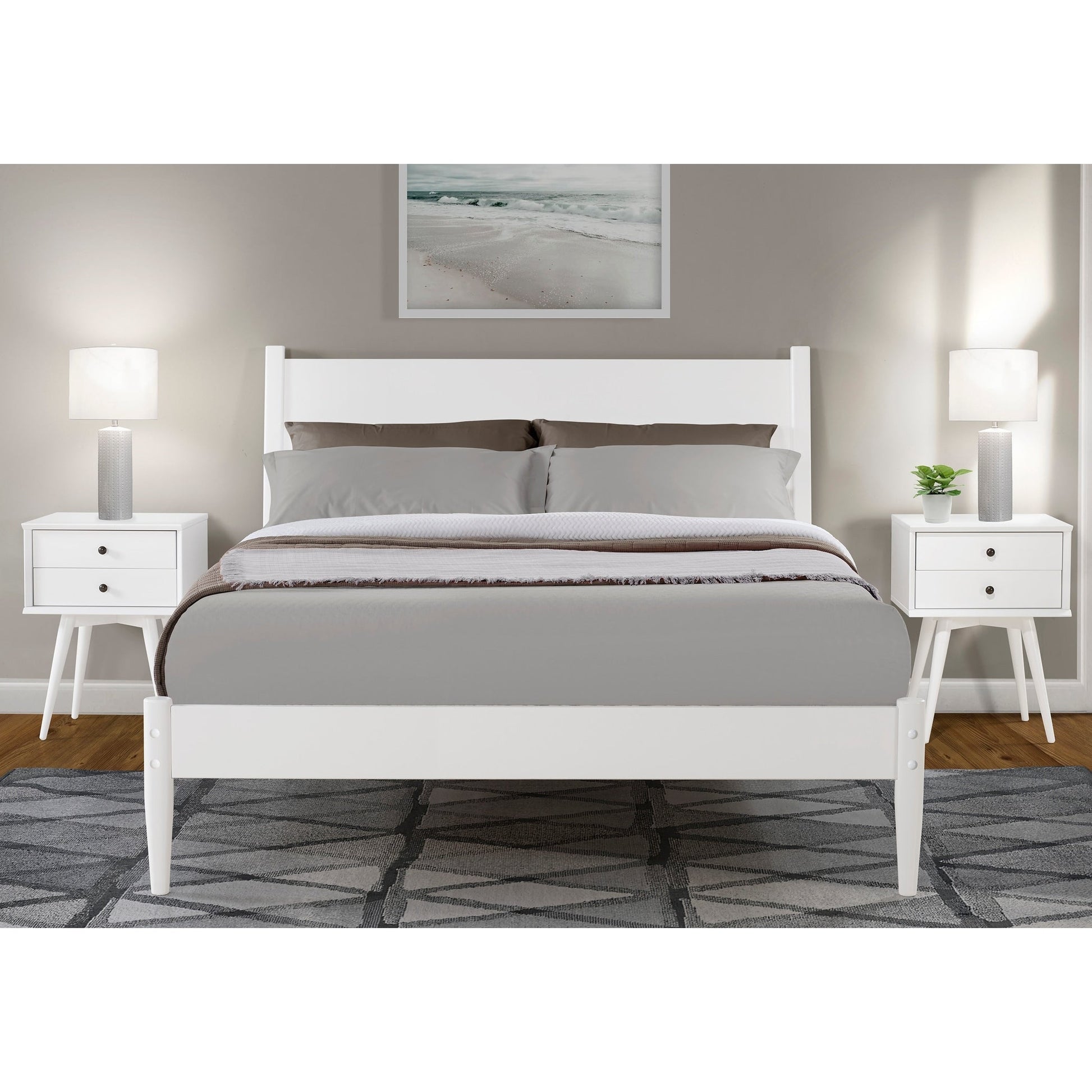 Experience the perfect blend of simple sophistication and warmth with Camaflexi's Mid-Century Panel Bed. Constructed with elegant pine wood and a rich protective finish, this bed showcases sleek lines and geometric forms. The smooth panel headboard with extended posts and round tapering legs adds to the bed's Mid-Century Modern element. With a slat roll foundation, 12 individual slats, three center supports, and three floor posts, this bed is built to last. Customize your bedroom with the natural simplicity found in this modern masterpiece.