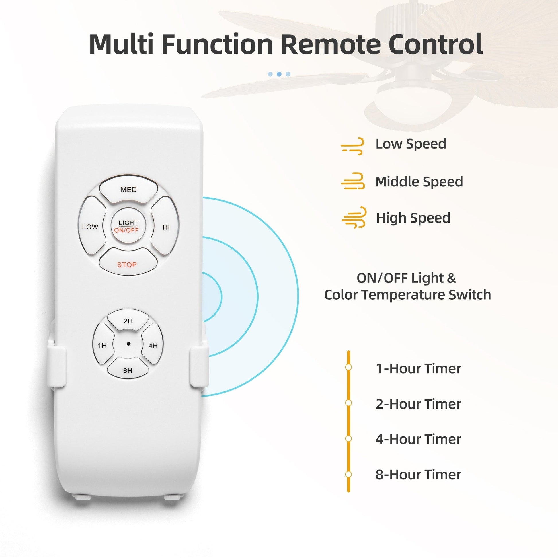 Moasis 52 Palm Leaf Ceiling Fan with Light Tropical Style with Remote
