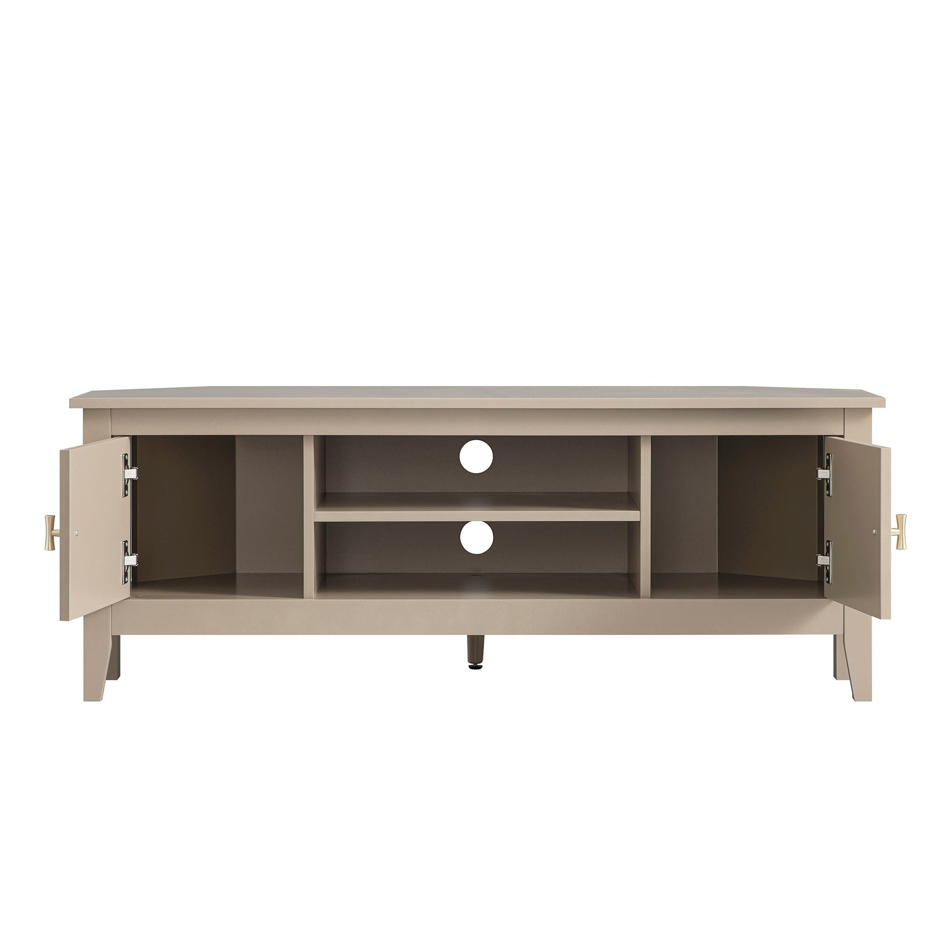 - Designed for stylish, space-conscious living, our Oakham Corner TV Unit in Deep Greige brings quiet sophistication to any snug nook.