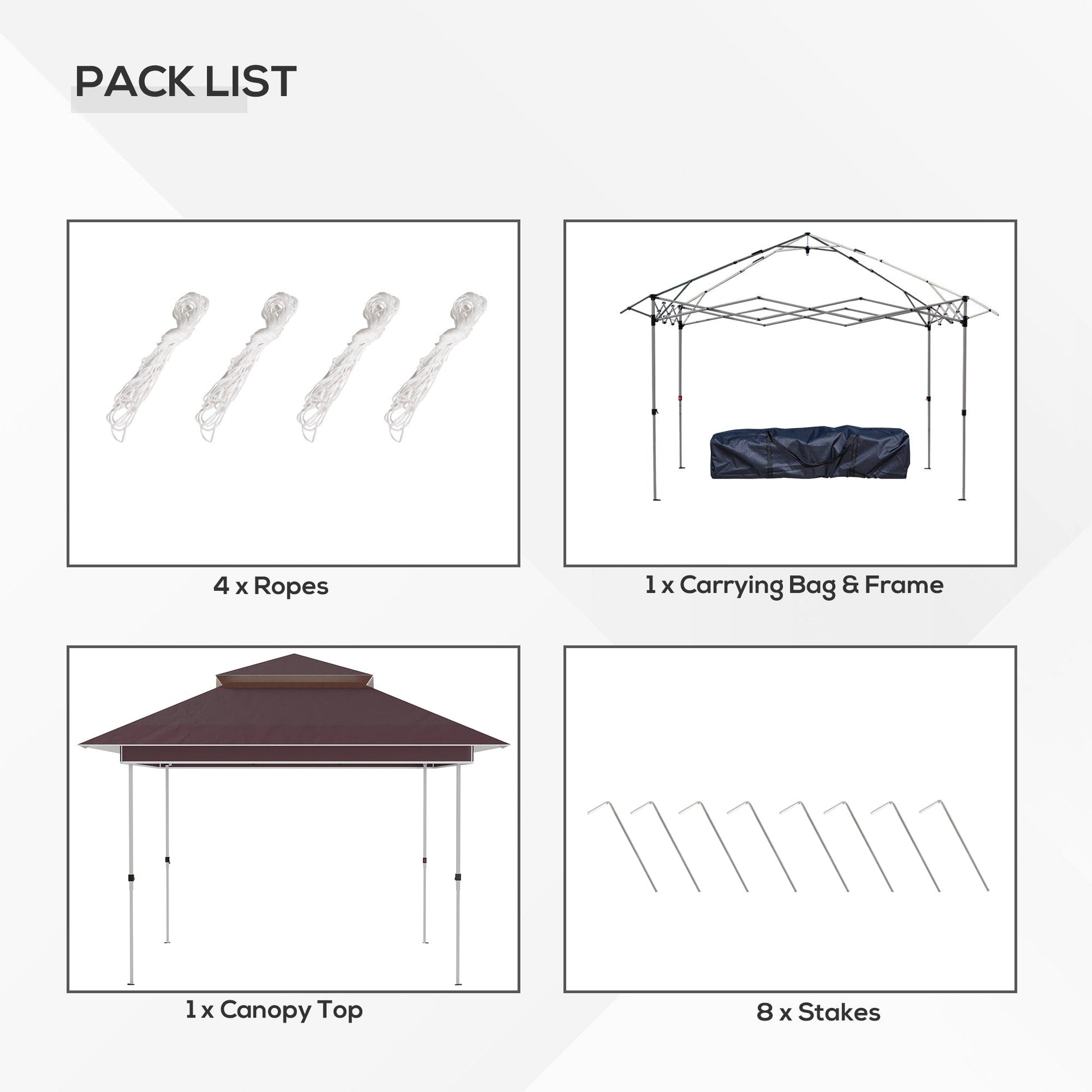 - NOTE: Not to be left up during adverse weather or inclement weather conditions which includes rain, snow, sleet and hail as they will add weight that can cause the tent to collapse.