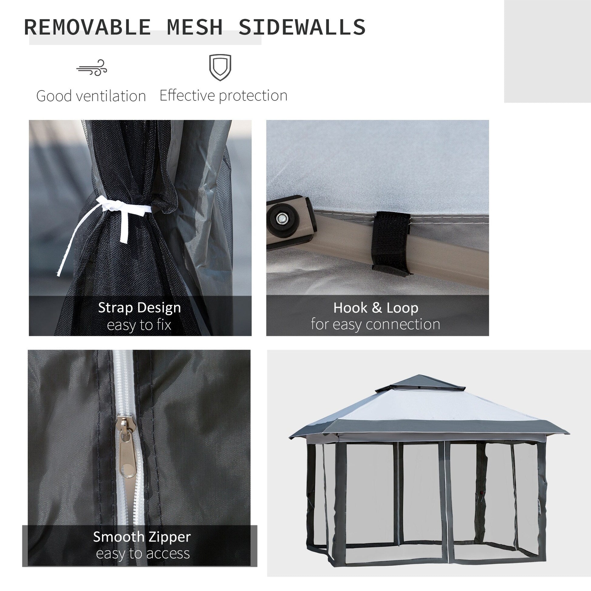 - Mesh sidewalls let you enjoy the breeze without unwanted winged guests