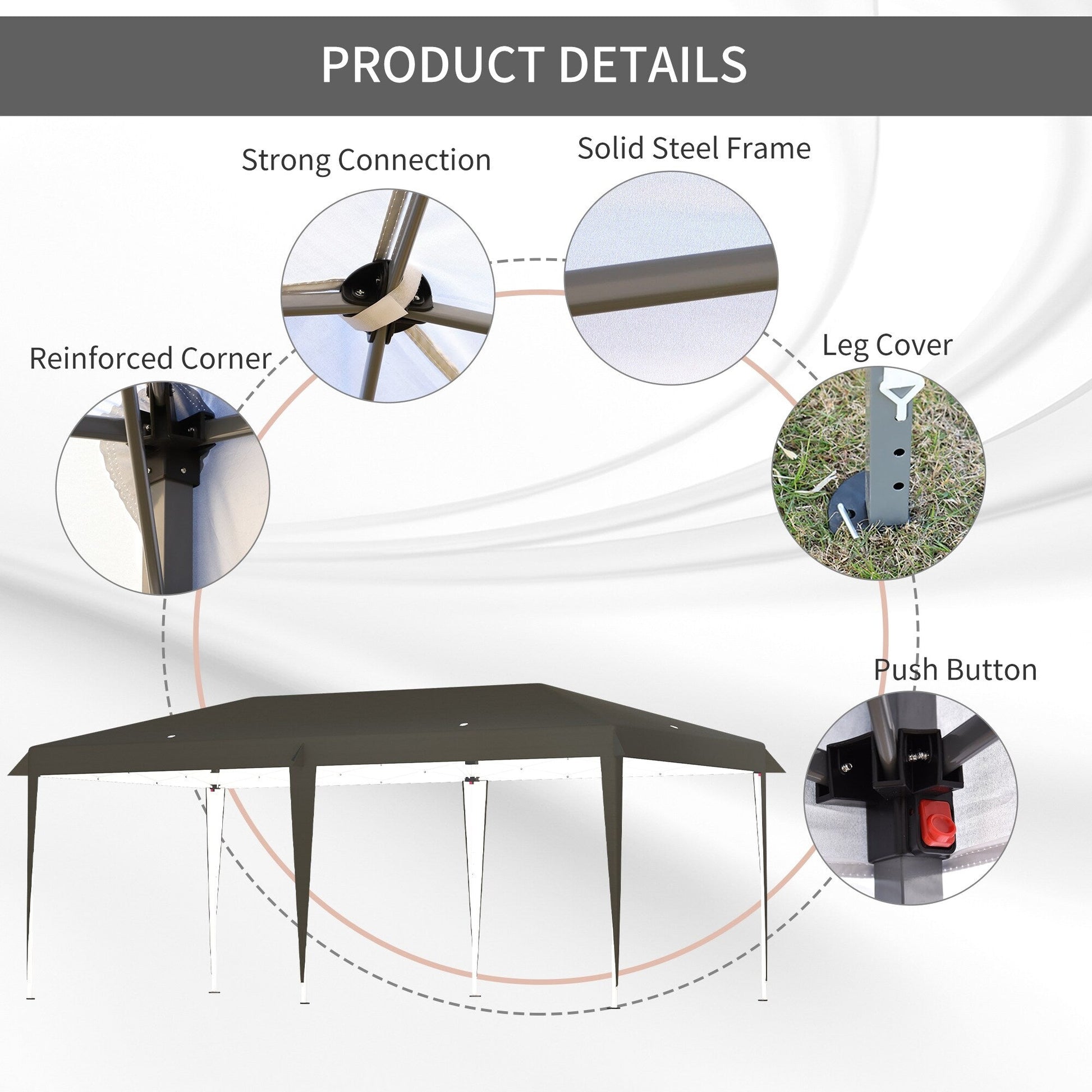 Outsunny has an extra-large pop-up tent for parties, so you can set up spacious shade and stop sunburns. With a little help from some friends, you can unfold a large floor plan that fits a crowd without feeling crowded. Whether you're a caterer who does weddings, a vendor for events, or just want to put on an outdoor party in a tent, you can bring it where you need it with a convenient carrying bag that fits in the car. Pop-in, pop-up, and pop-out with Outsunny.