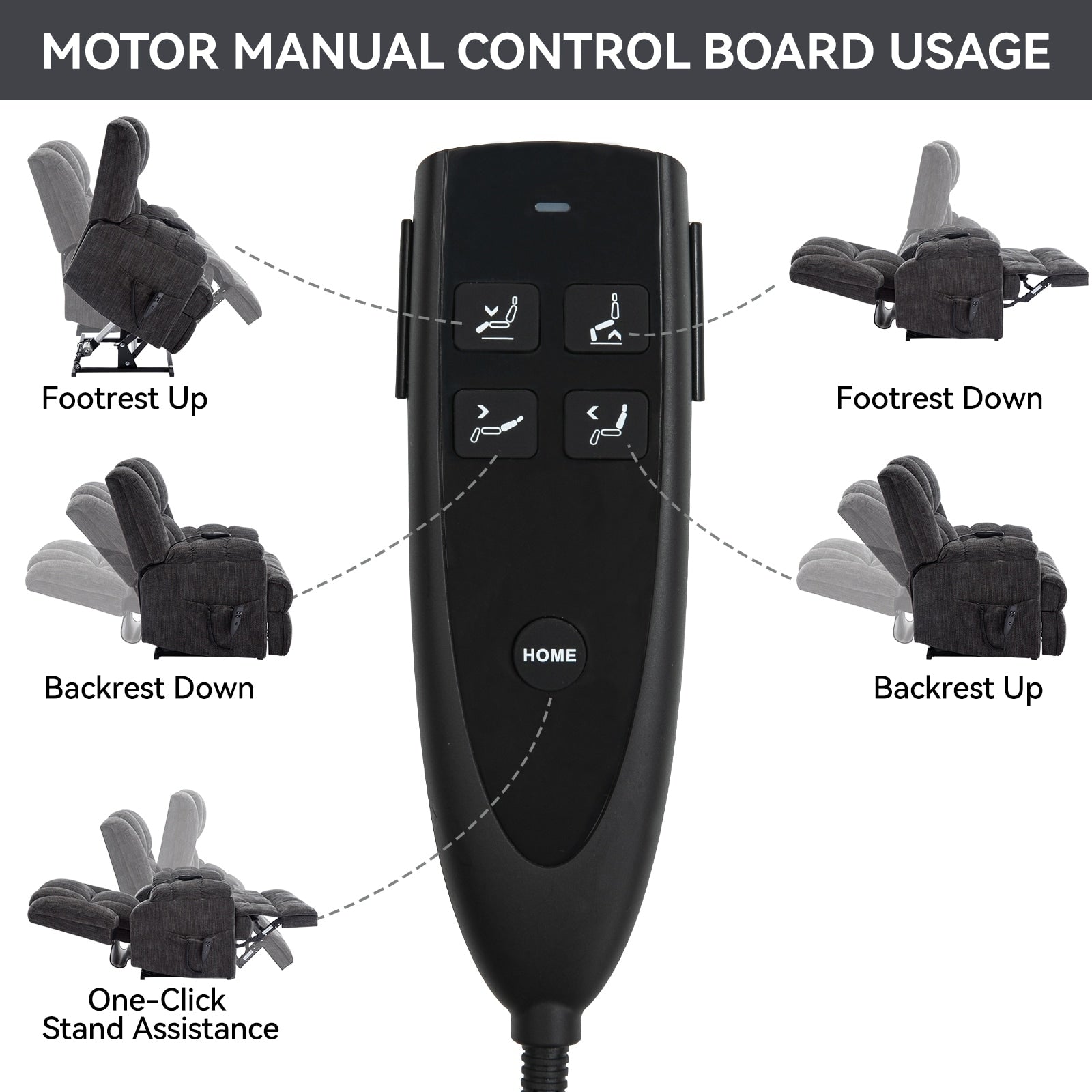 - Power Lift Recliner with Dual Motor: This chair is equipped with a dual-motor system, allowing independent control of the backrest and footrest. With a simple press of the power remote, you can recline the chair close to 180 degrees or activate the lift function, which smoothly and silently assists in helping users stand up. Ideal for seniors, individuals with leg or back balance issues, or those recovering from surgery.
