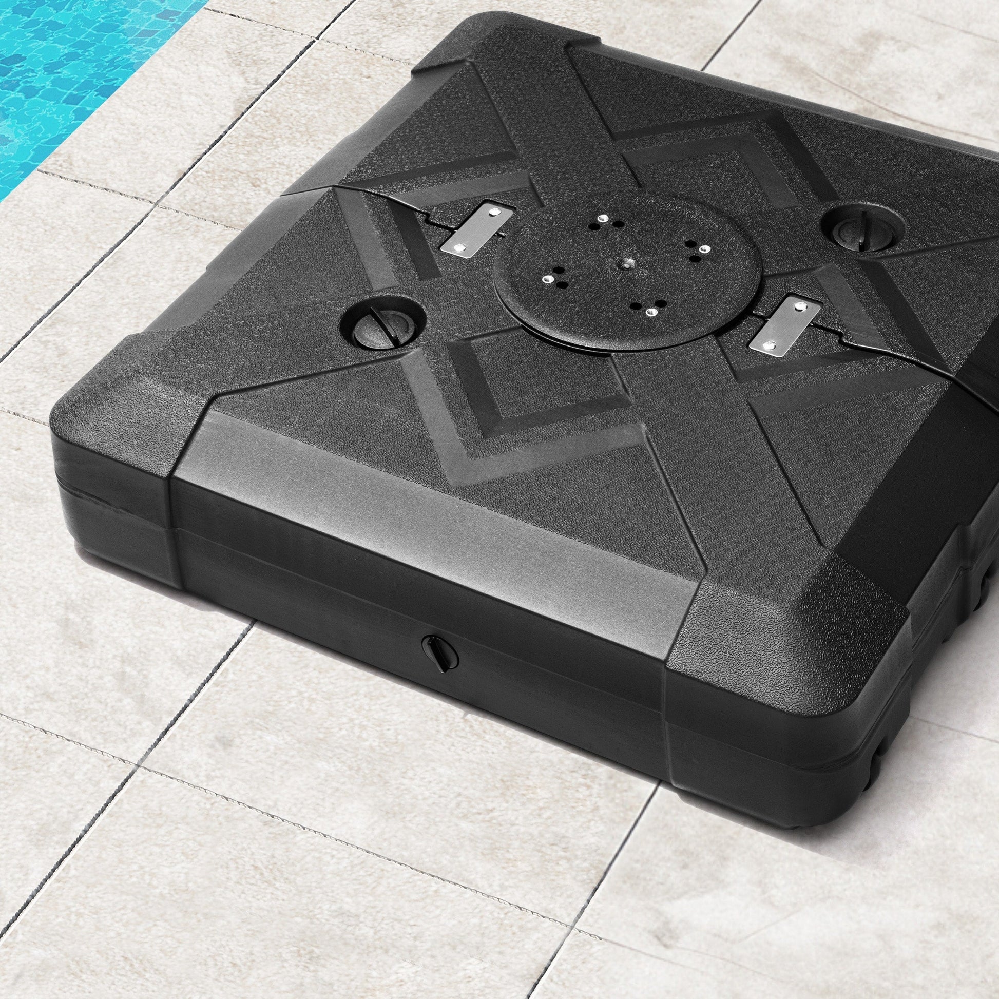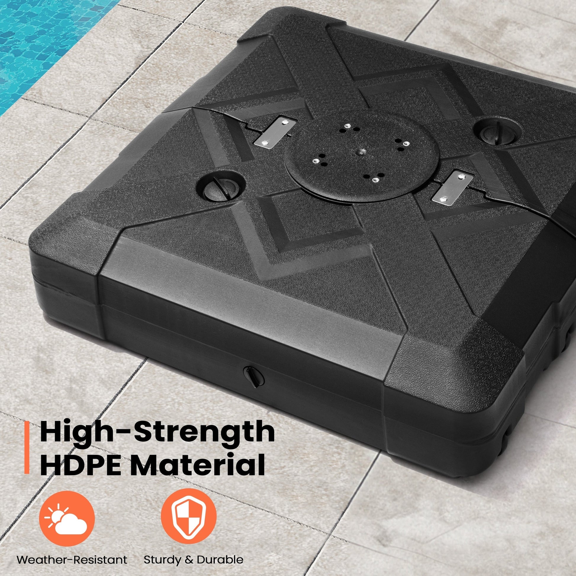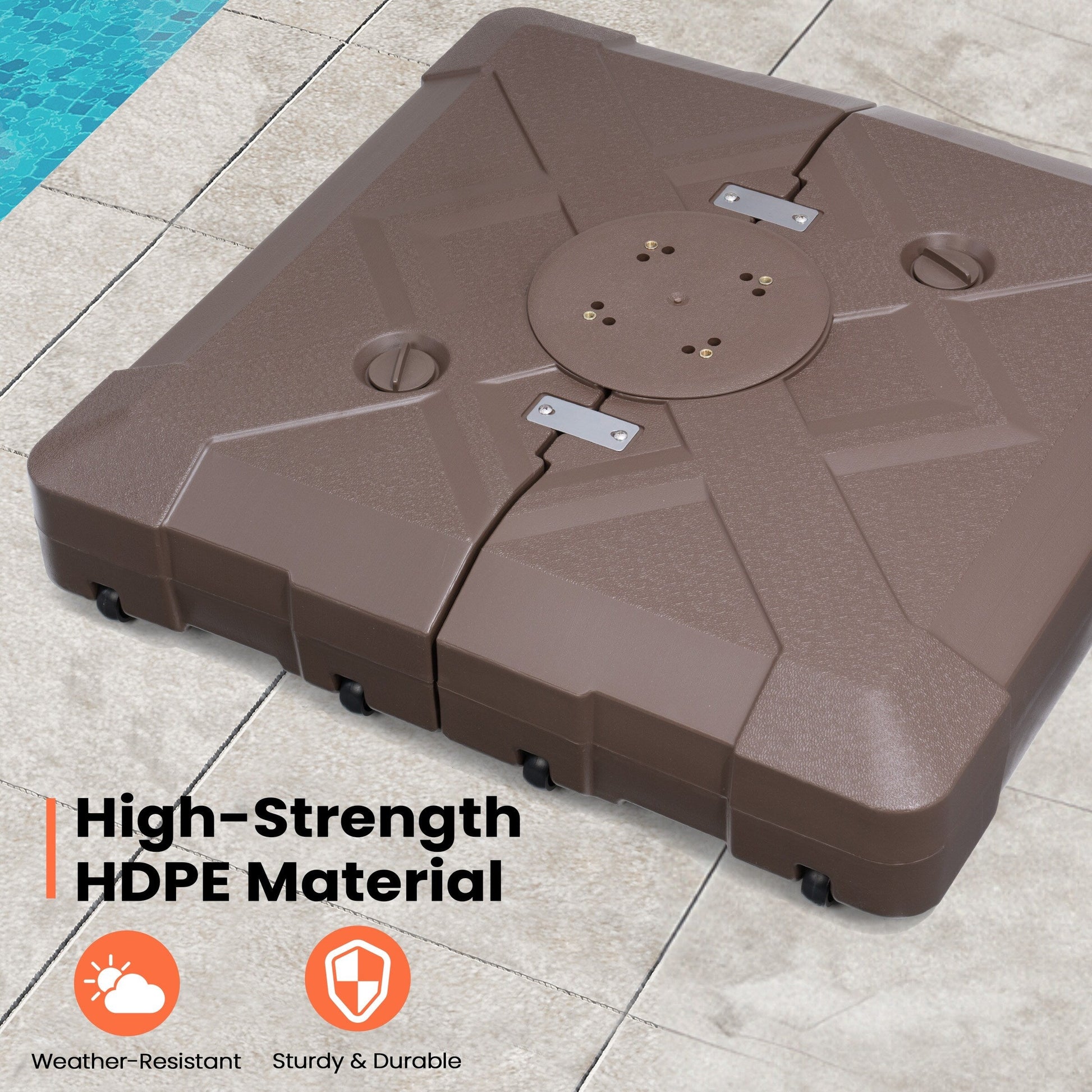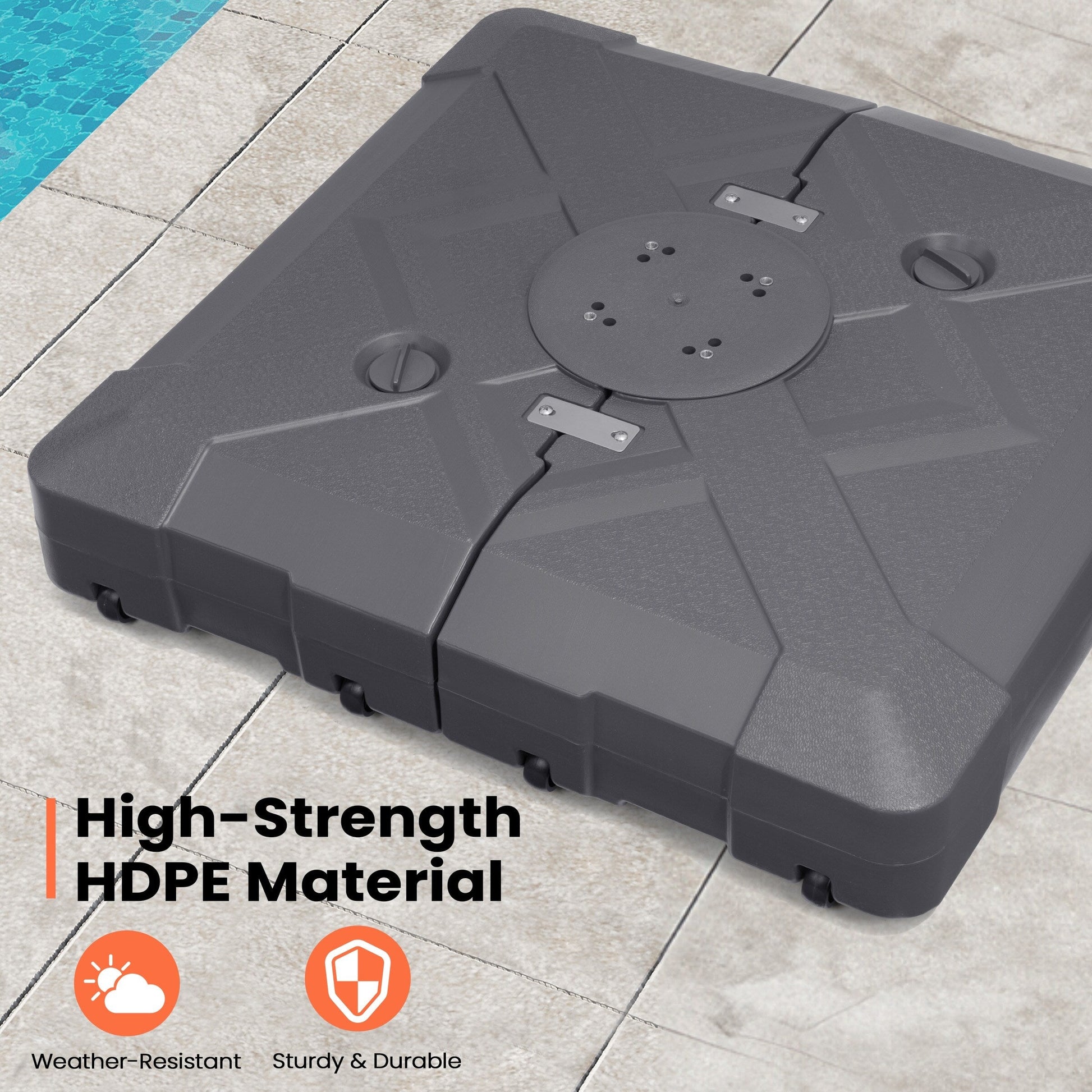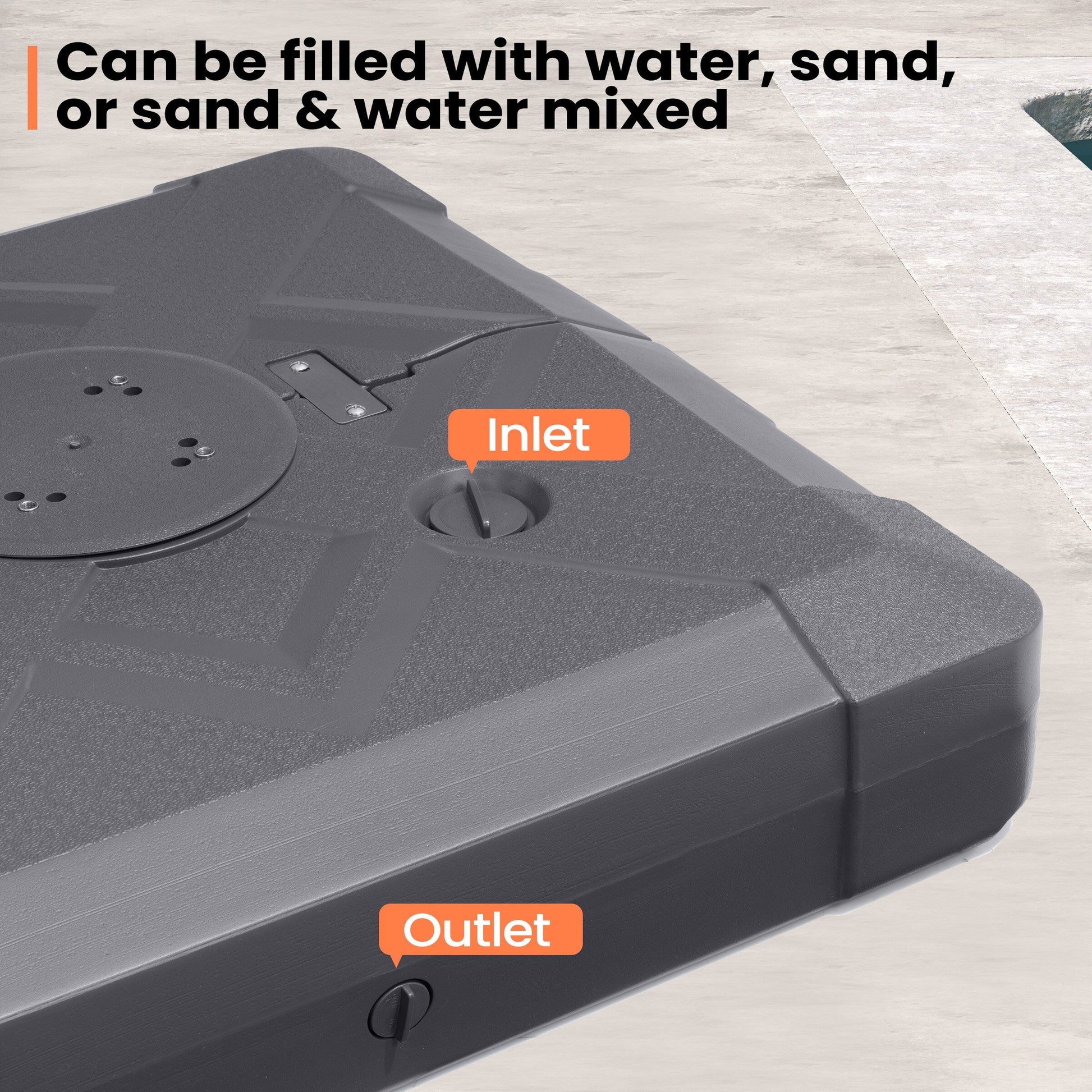 Secure and give your outdoor space 3D surface design look with this 220 lbs patio cantilever umbrella base with wheels by Pellebant. The weight can be filled with either water or sand for stability and support. Keeps your umbrella from blowing over on windy days.