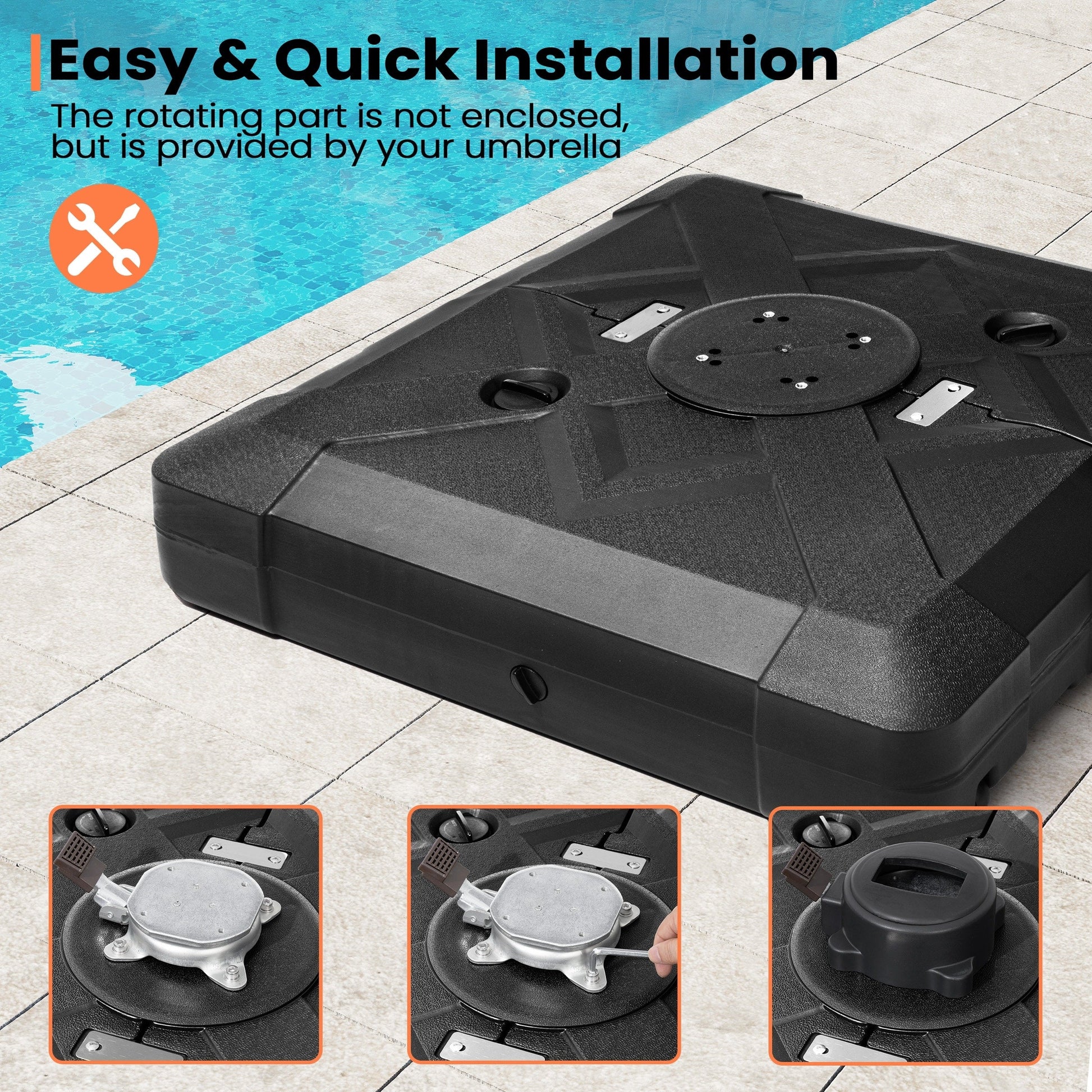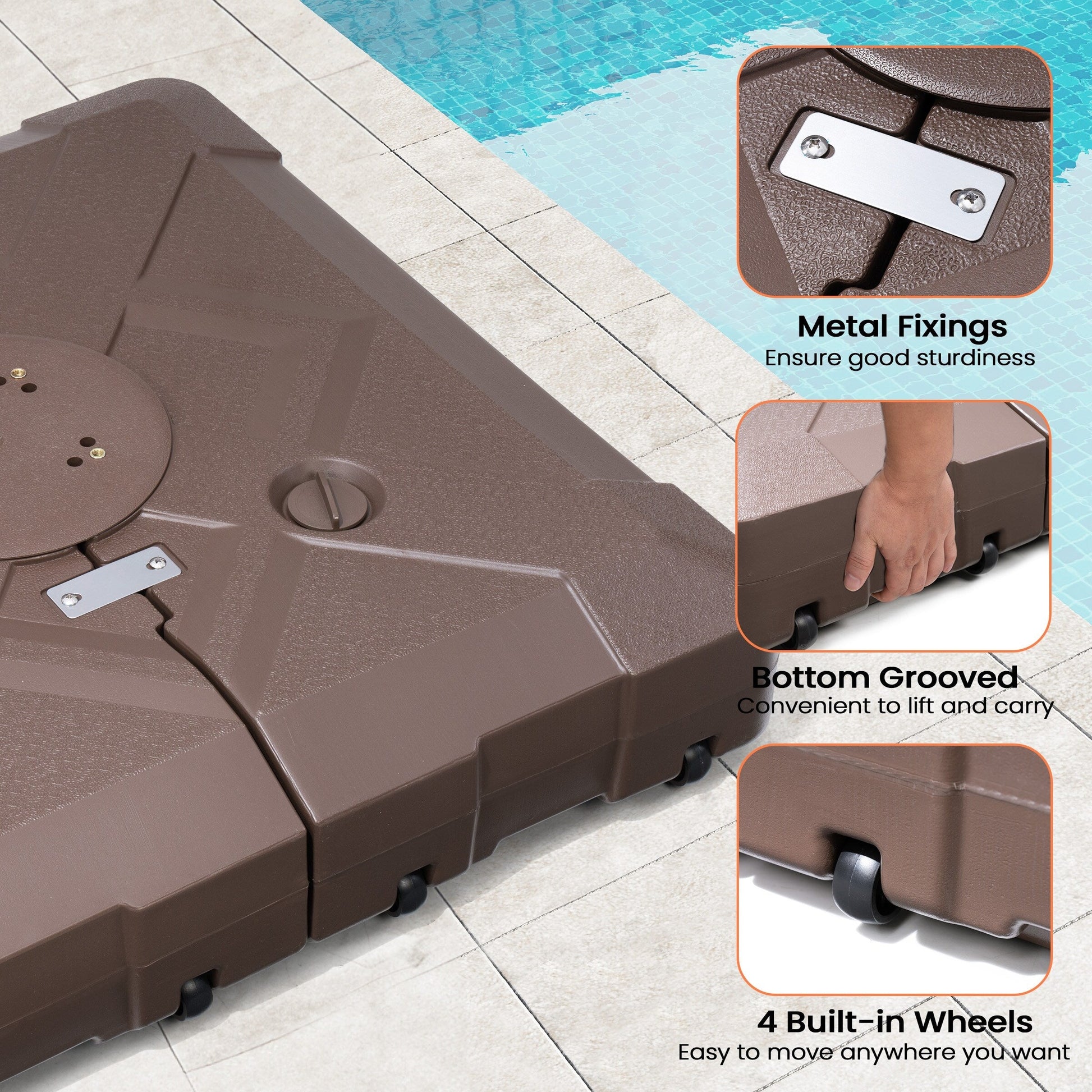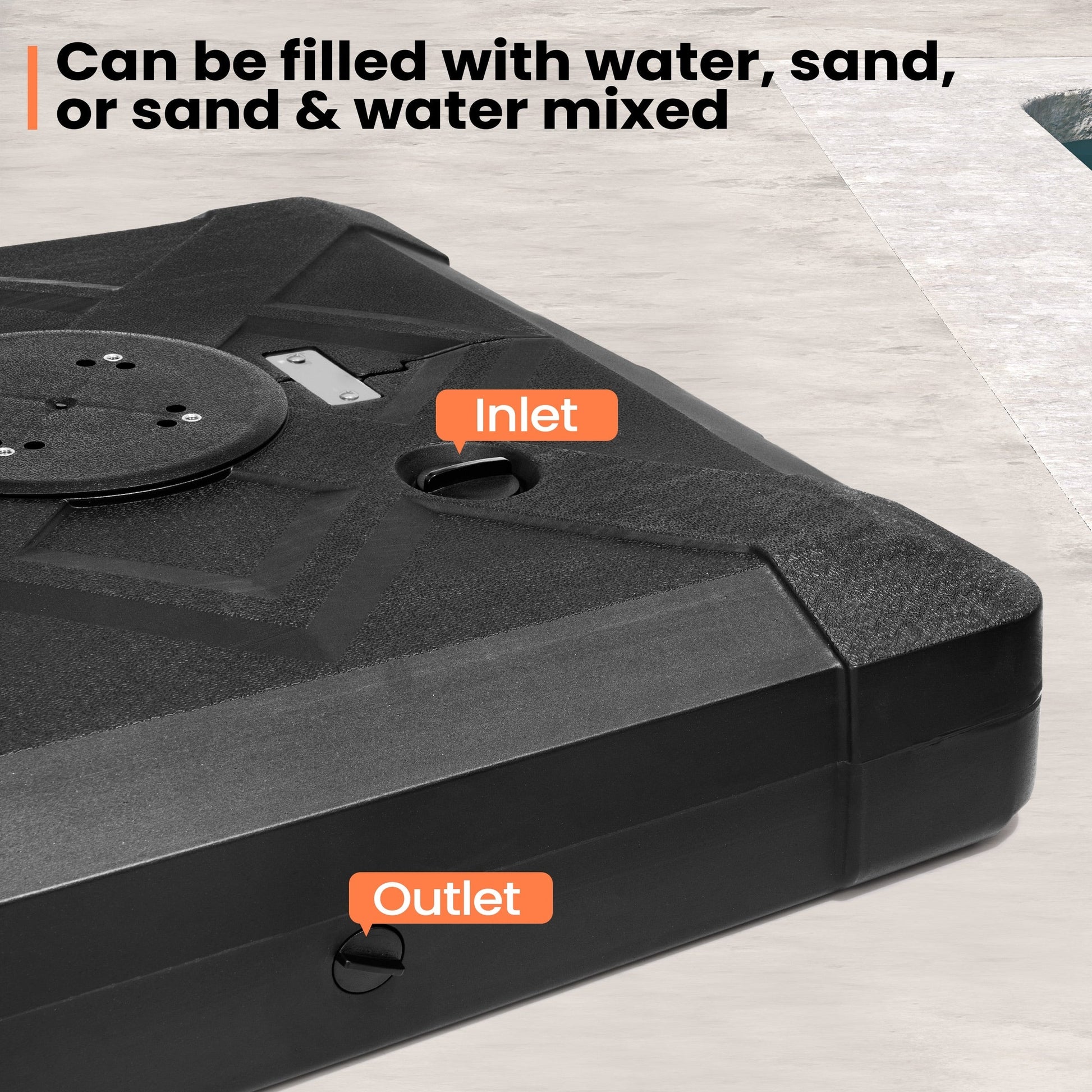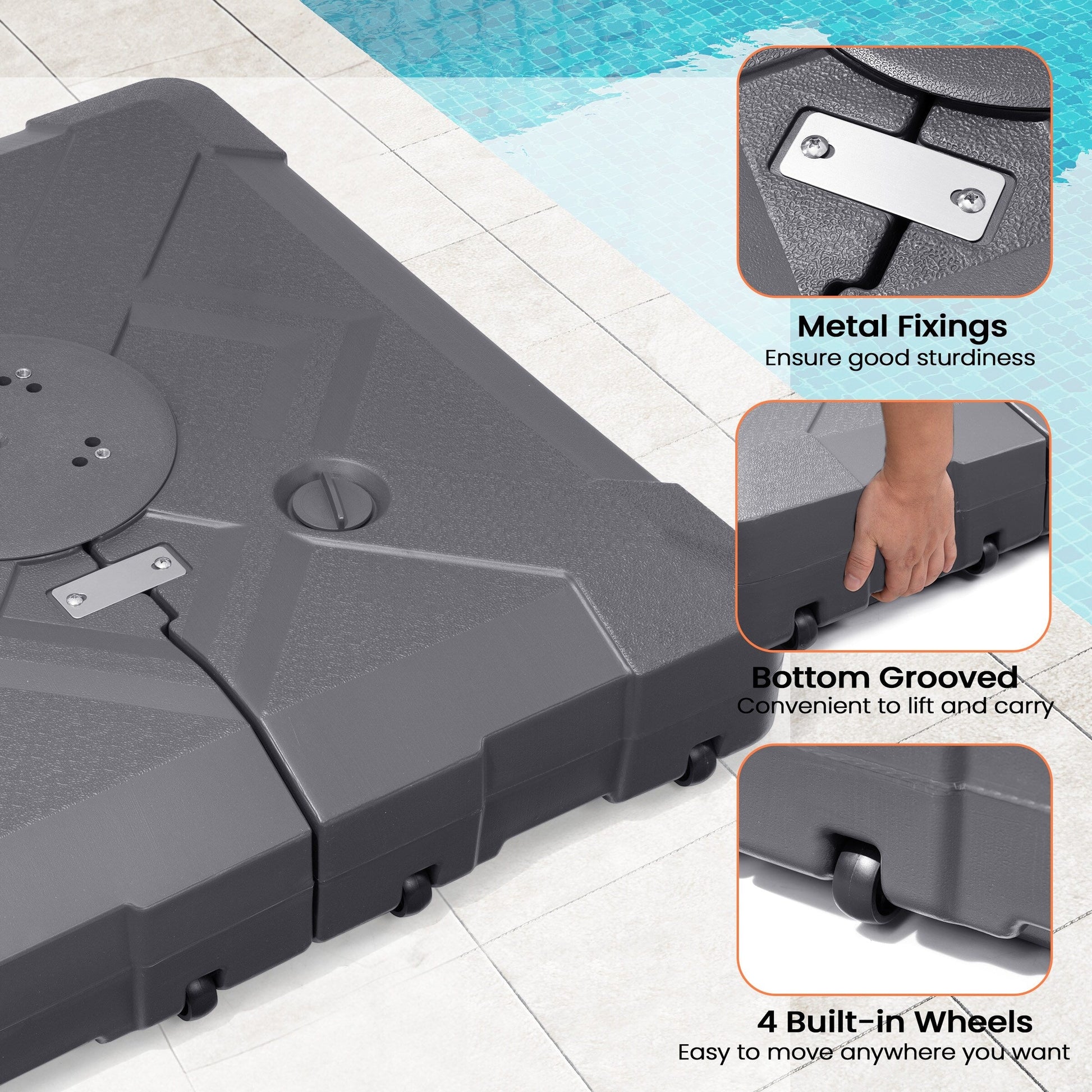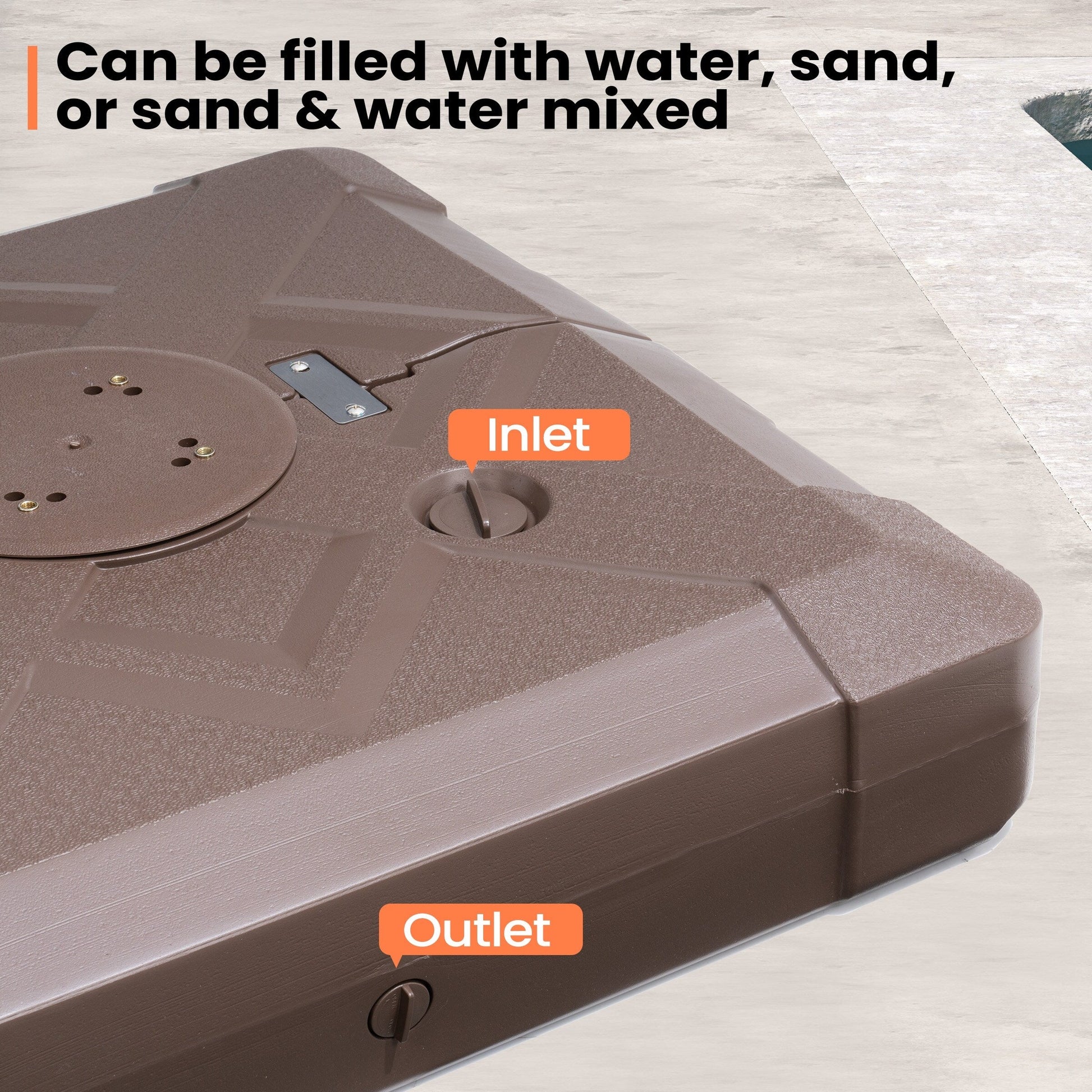 Secure and give your outdoor space 3D surface design look with this 220 lbs patio cantilever umbrella base with wheels by Pellebant. The weight can be filled with either water or sand for stability and support. Keeps your umbrella from blowing over on windy days.