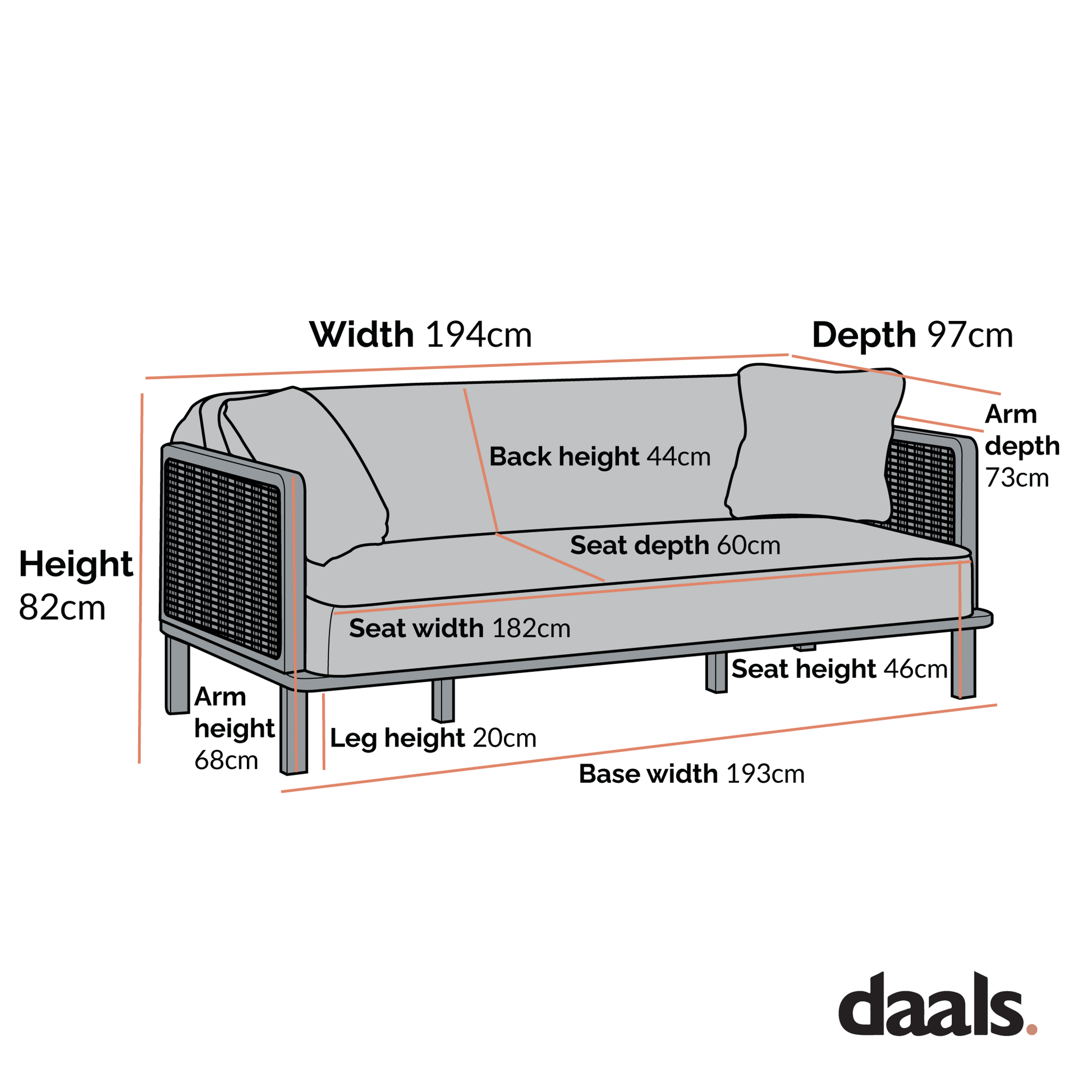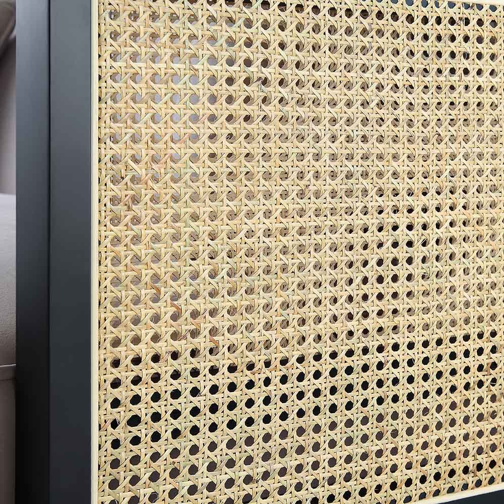 - Complete the look: Pictured with our Pienza Cane Sofa Bed are our stylish Maru Oak Pedestal Coffee Table and our Frances Woven Rattan Chest of 6 Drawers in Black