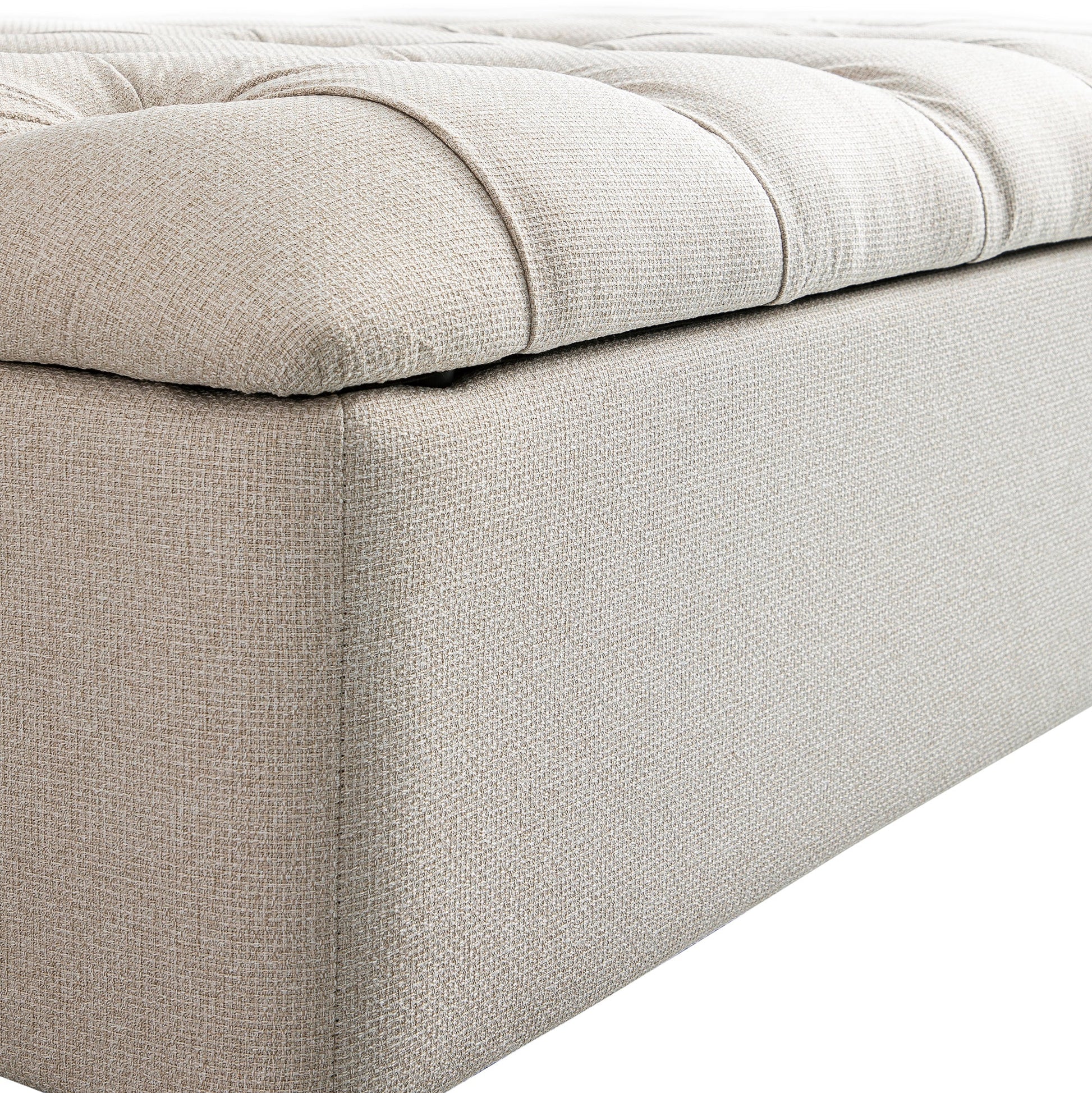 - By day, Portland serves as a generously cushioned ottoman, beautifully upholstered in soft-touch fabric and finished with deep buttoned tufting inspired by classic Chesterfield styling — bringing a sense of traditional elegance and heritage charm to any space.