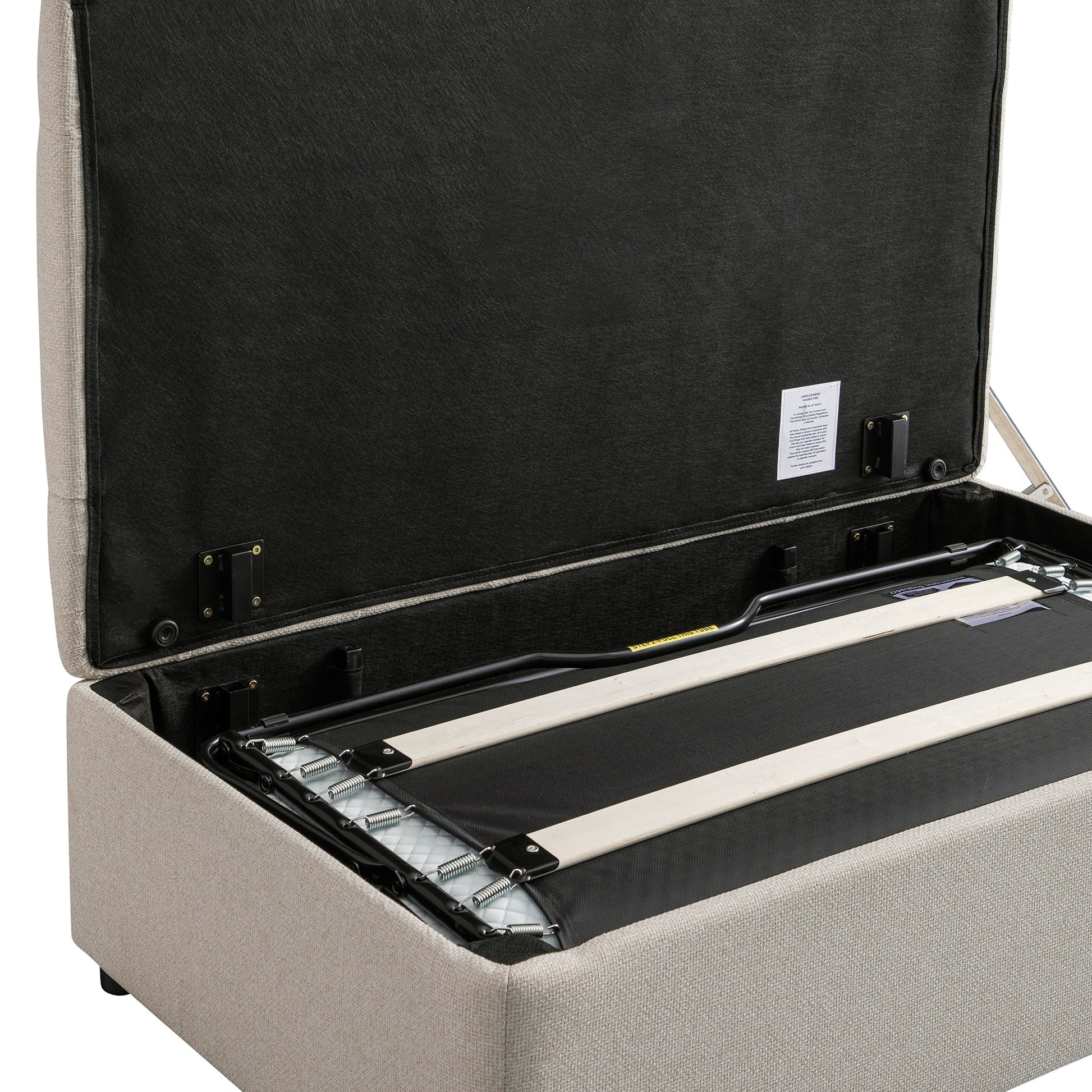 - The sturdy metal folding frame and supportive foam mattress are neatly concealed within the ottoman base, ready to be unfolded whenever extra sleeping space is needed.