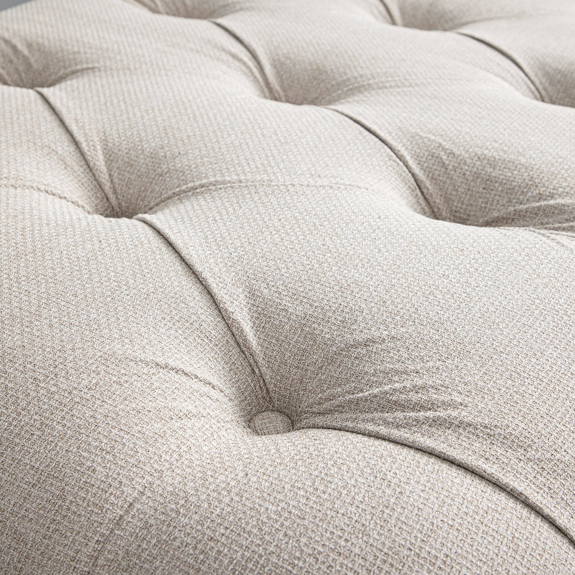 - By day, Portland serves as a generously cushioned ottoman, beautifully upholstered in soft-touch fabric and finished with deep buttoned tufting inspired by classic Chesterfield styling — bringing a sense of traditional elegance and heritage charm to any space.