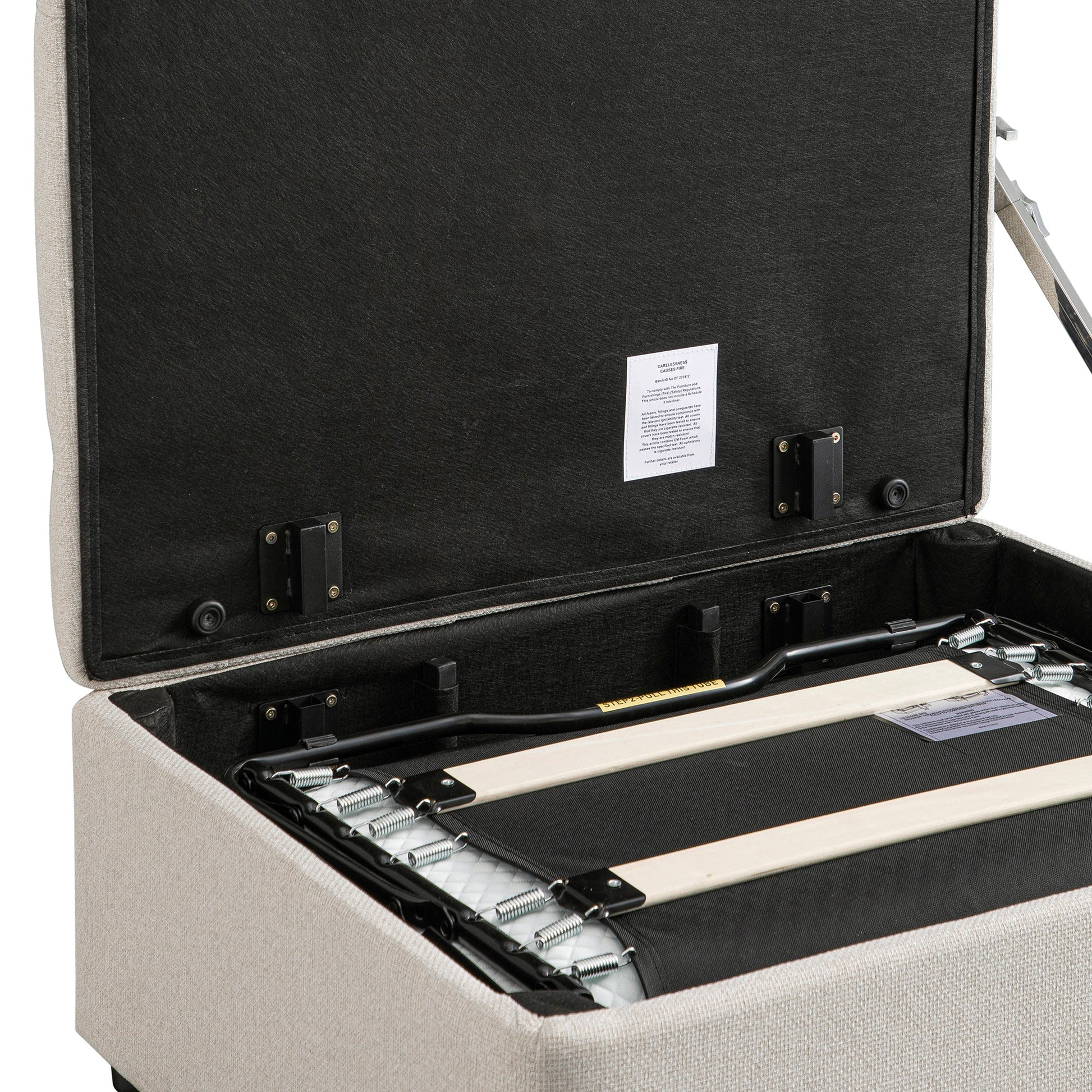 - The sturdy metal folding frame and supportive foam mattress are neatly concealed within the ottoman base, ready to be unfolded whenever extra sleeping space is needed.