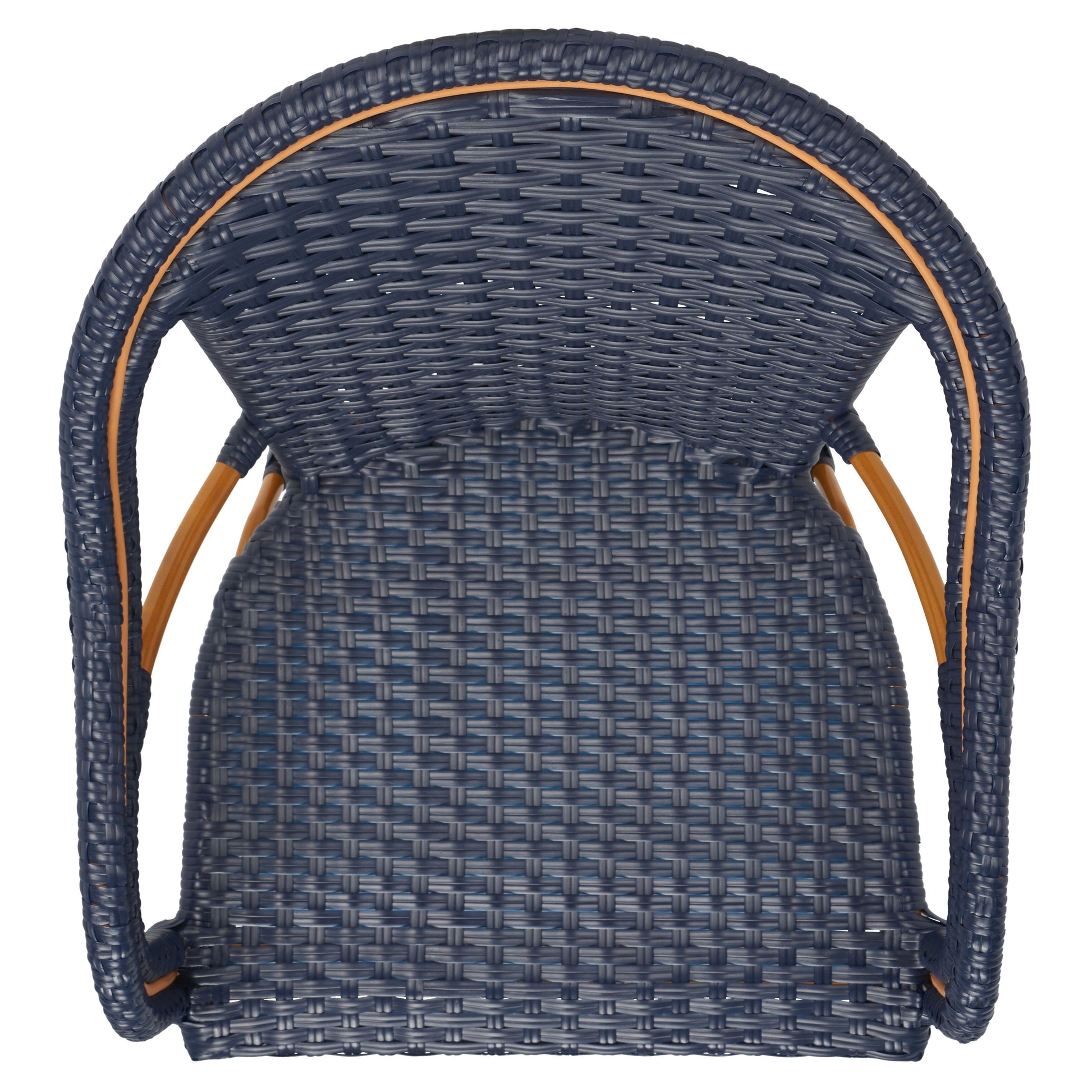 Complement any outdoor space with the breezy charm and warmth of our armchair. It updates the time-honored French bistro chair with a color palette. Its woven contours and sheltering arms offer easy comfort. Featuring faux wicker elegantly wrapped around an aluminum frame, our armchair captures textural beauty that can withstand the effect of sun, rain, and heat. Our lightweight and weather-friendly armchair can serve as a convenient, stylish, and comfortable spot to lounge or dine in your patio or terrace.