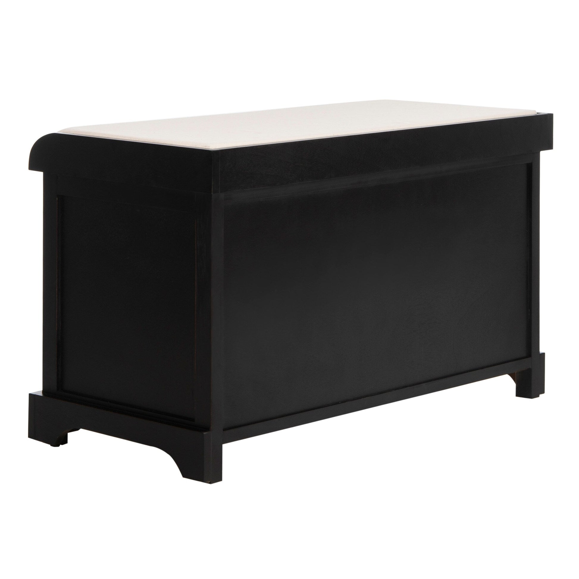 Sit back and relax. This charming storage bench with pine wood frame and linen upholstered seat is perfect for changing shoes in an entry hall, and its woven baskets can hold towels and other necessities in a master bath. A versatile piece in any room.