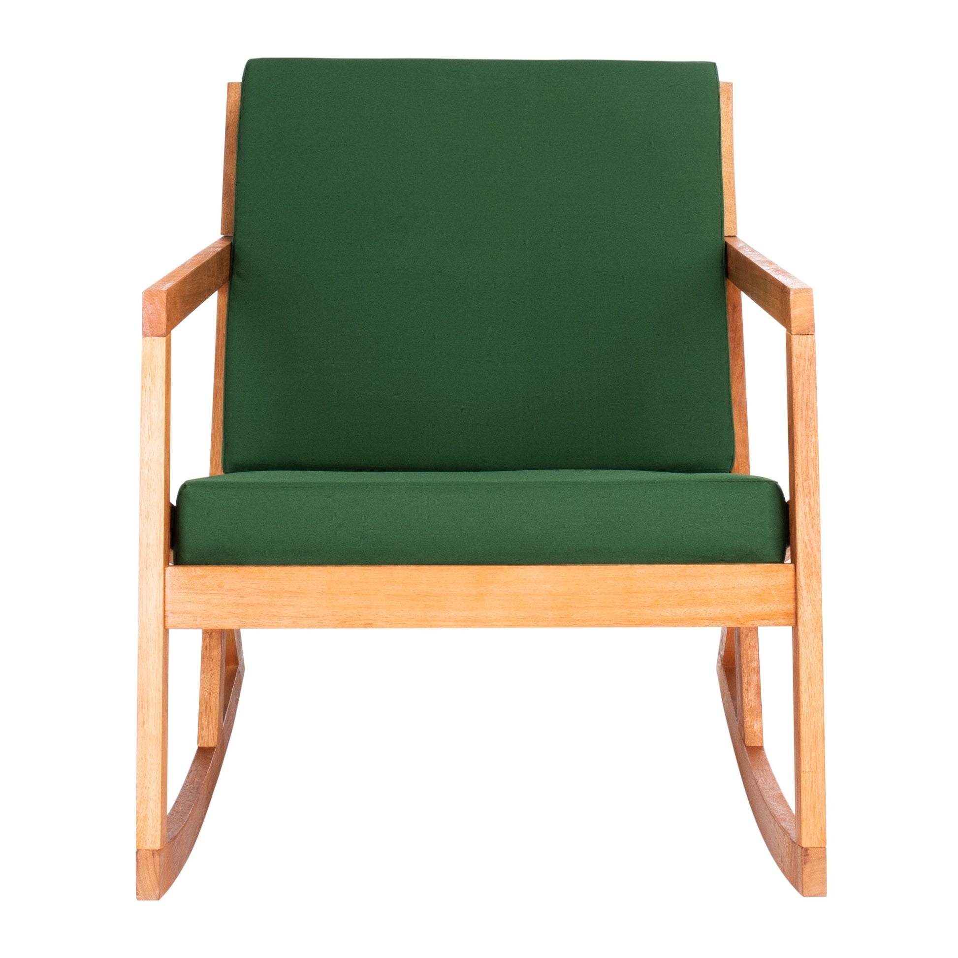 Contemporary with a nod to hand crafted Shaker individuality, this elegant outdoor rocking chair is destined to become a new American classic. Made from eco friendly Eucalyptus wood in finish, it comes with easy care beige front and back cushions.