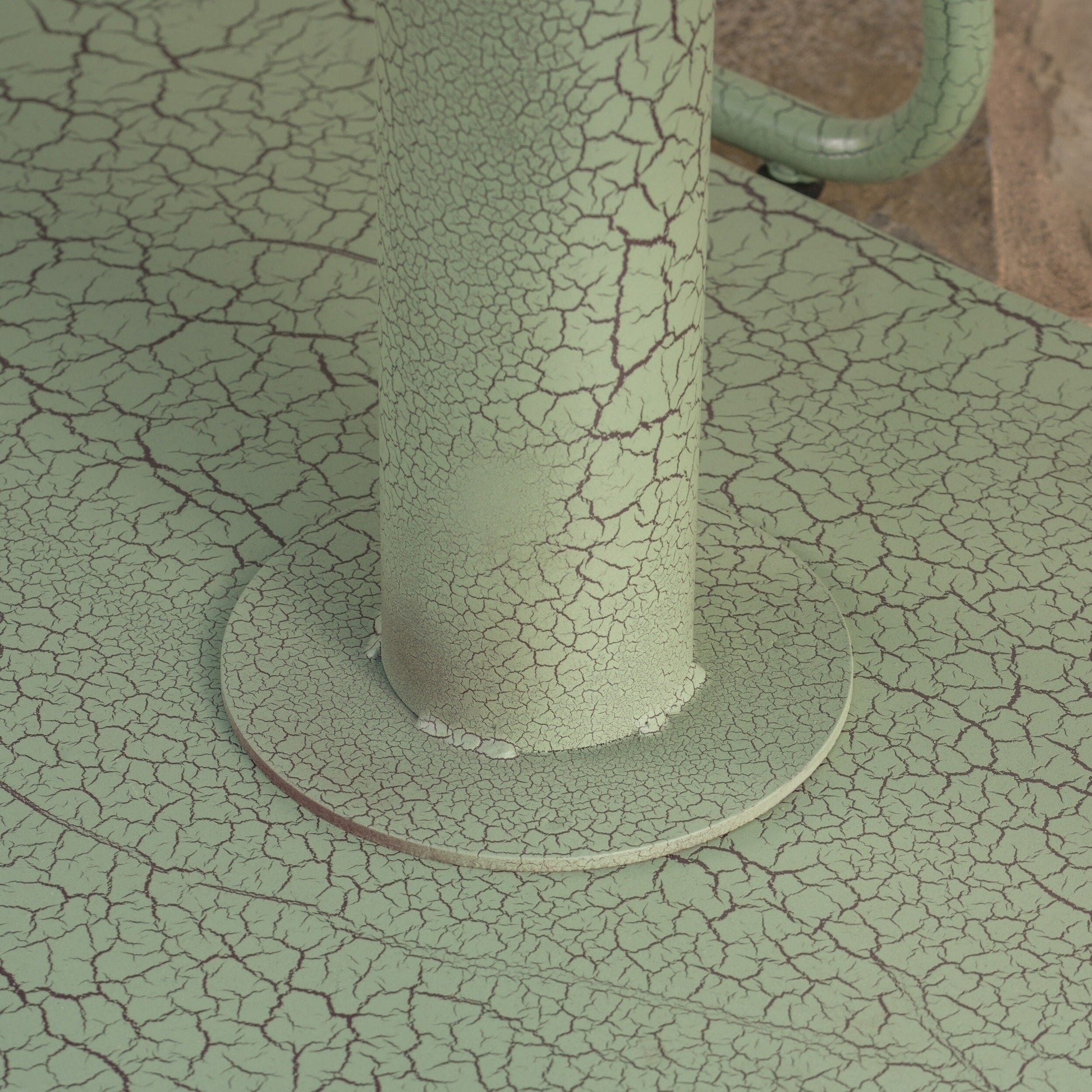 This elegant outdoor bistro set is perfect for an intimate meal with a loved one. Made from a durable iron construction, it's built to hold up to the elements and bring pleasure for years to come. Ideal for the backyard, patio, or garden.