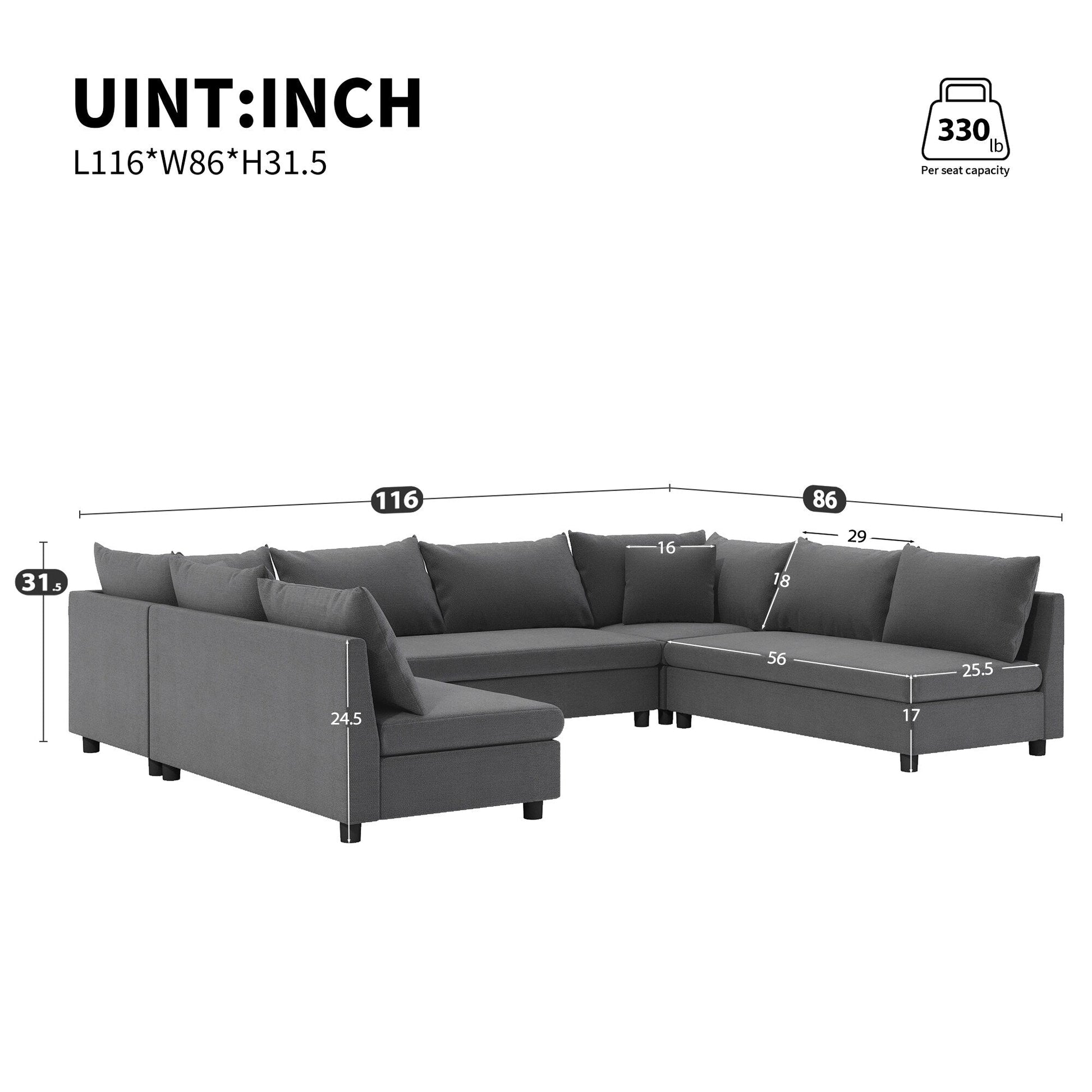 Sectional Sofa,Reversible U Shaped Chenille Couch Set,Free Combination,Oversized 8 Seat Convertible Sofa