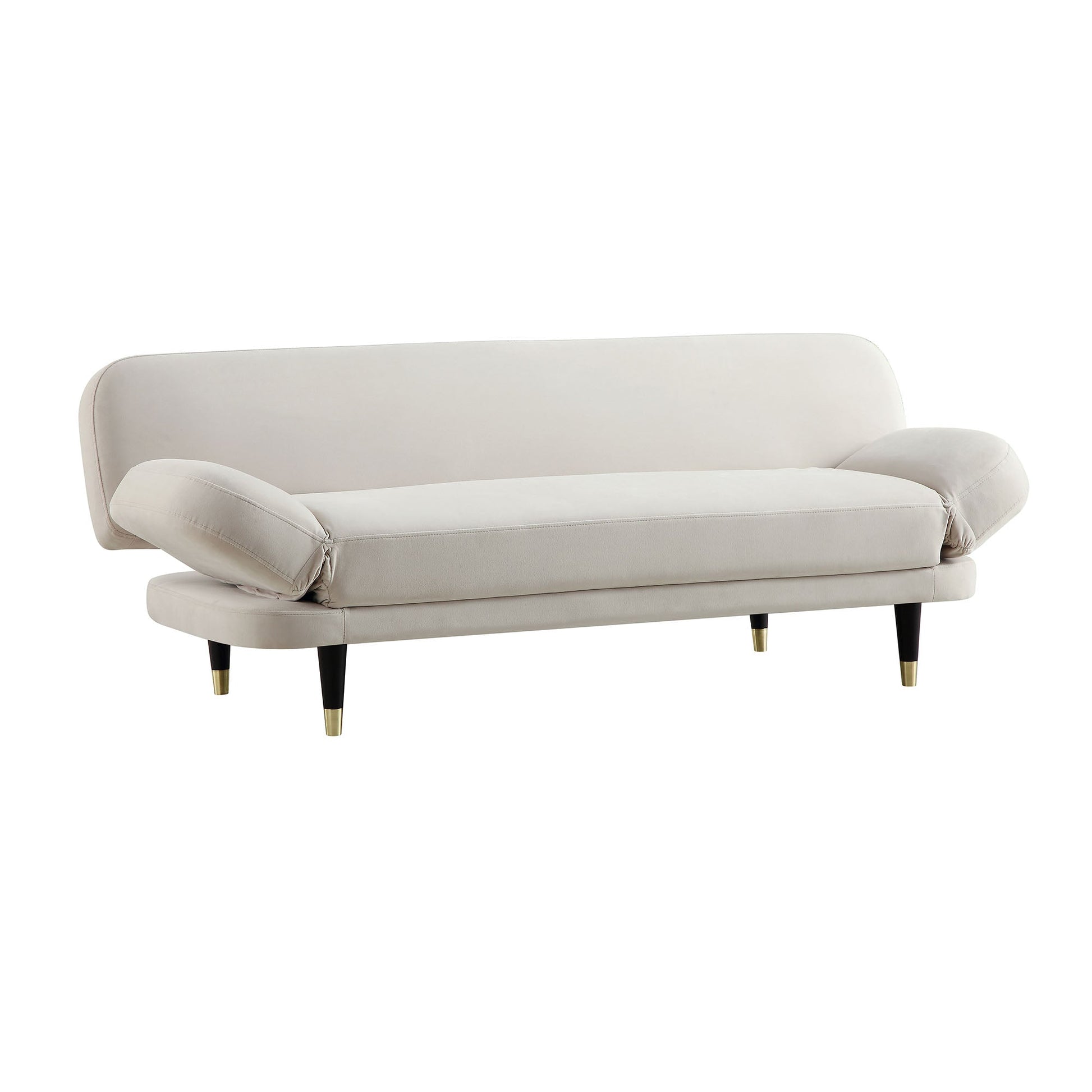 - Upholstered in soft champagne colour velvet, our Solna sofa bed is supported by solid wood internal frame, accented with brass tipped black wooden legs for a mid-century look.