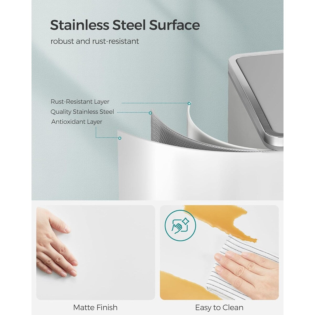 SONGMICS Dual Trash Can, 2 x 8 Gal Garbage Can, Stainless Steel