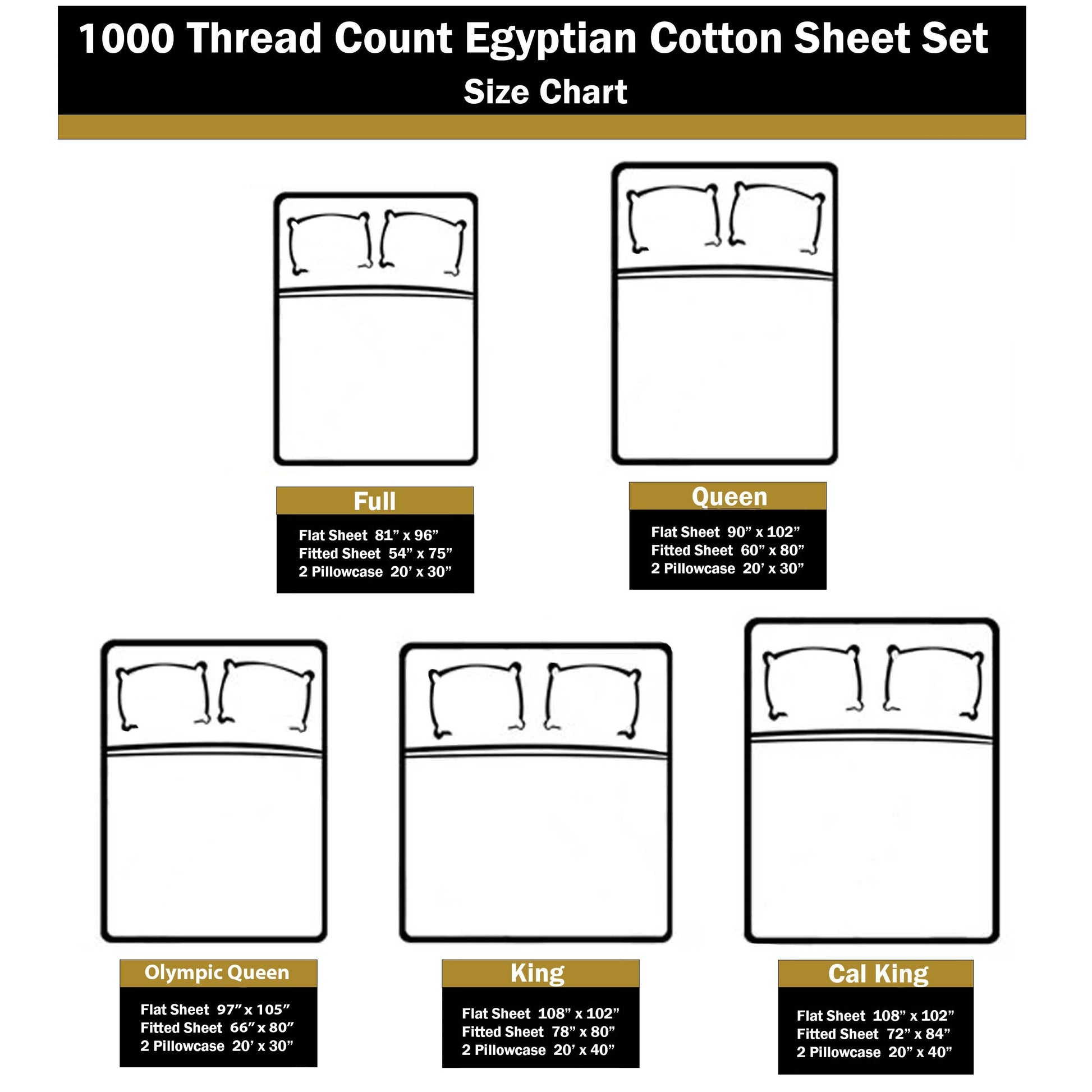 • Full Fitted Sheet is 54 inches x 75 inches, Flat Sheet is 81 inches x 96 inches, Pillowcase is 20 inches x 30 inches