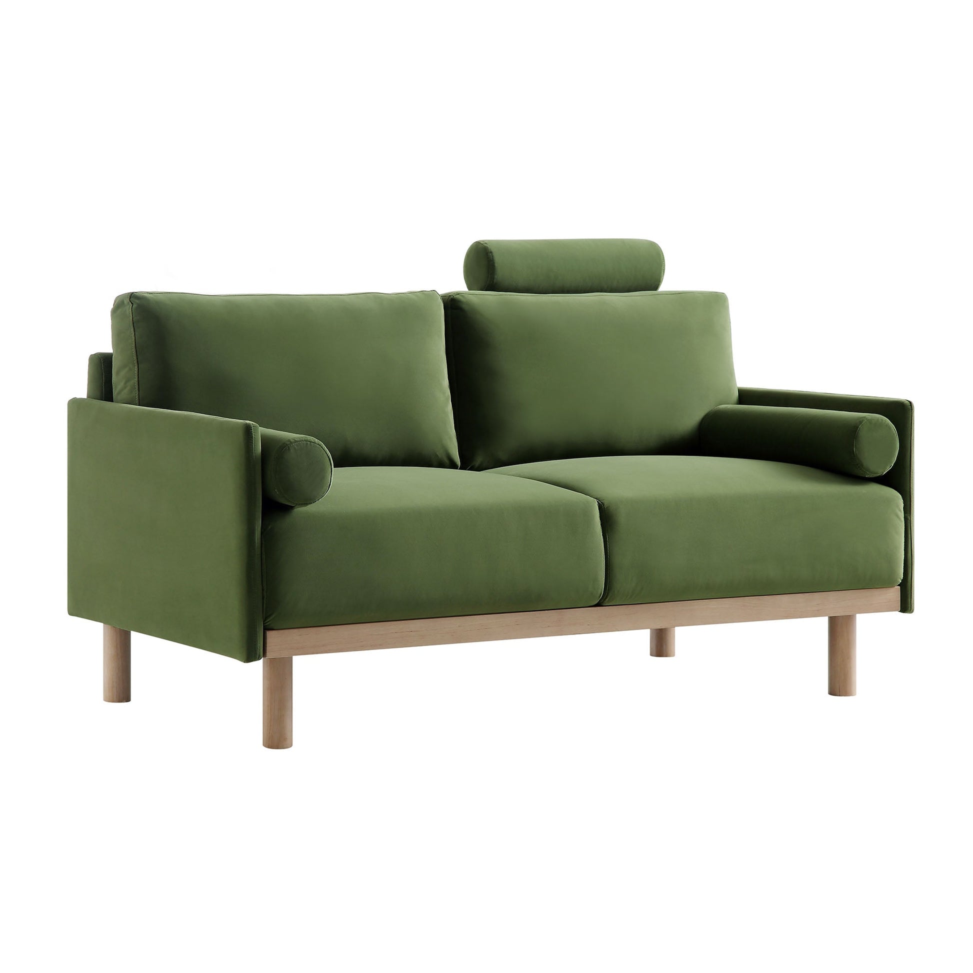 - Upholstered in soft velvet touch fabric in a fern green colour, providing comfortable seating