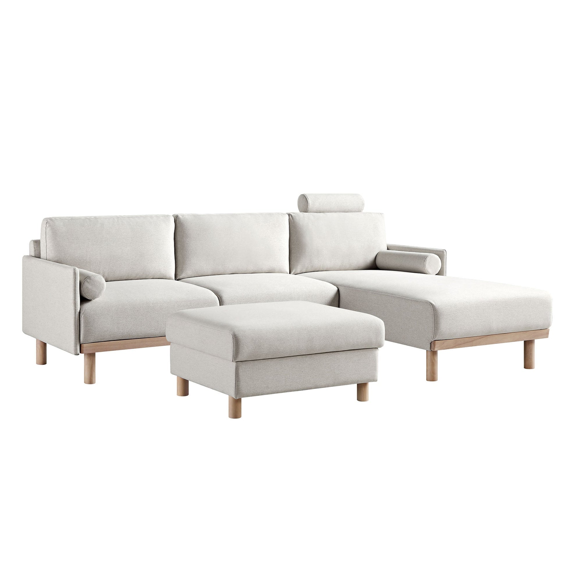 Timber Oatmeal Fabric Sofa, Large 3-Seater Chaise Sofa Right Hand Facing