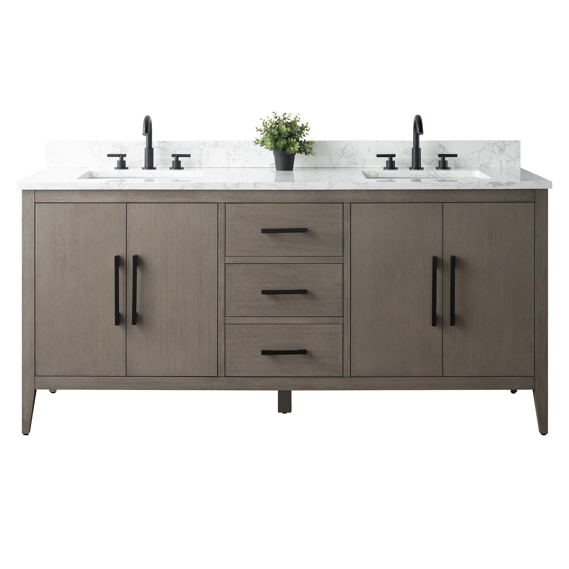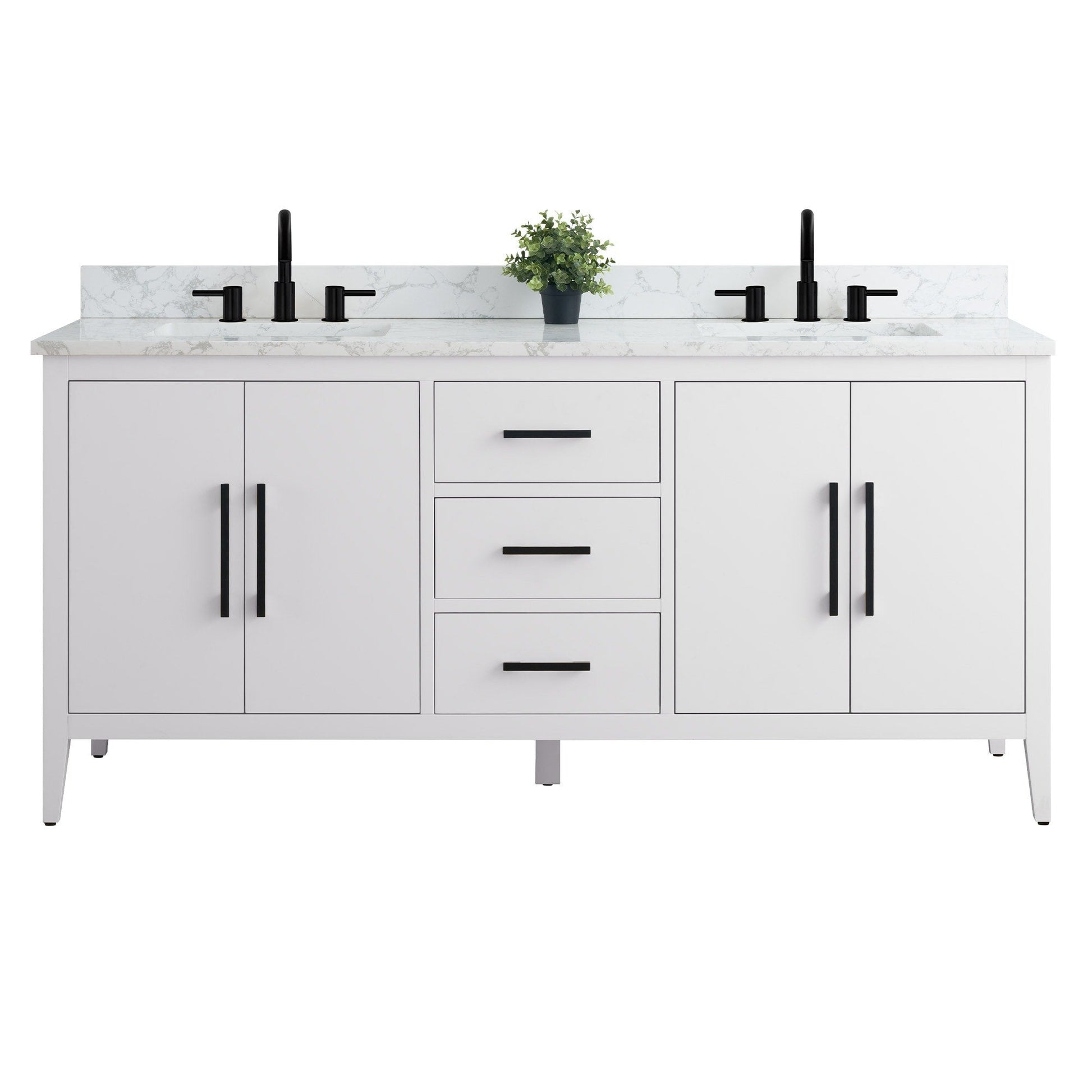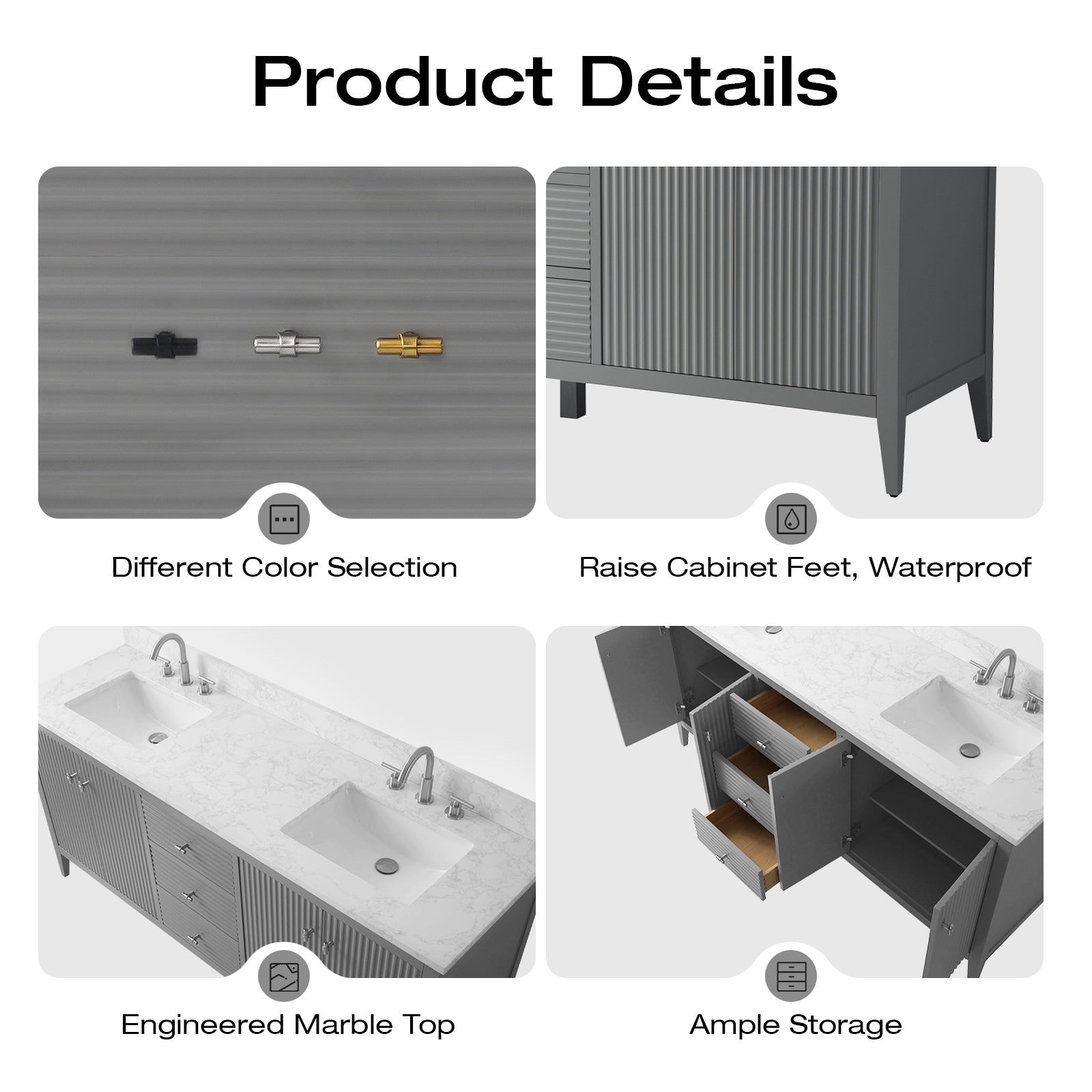 Vanity Art 72 Double Sink Bathroom Vanity Cabinet with Engineered Marble Top