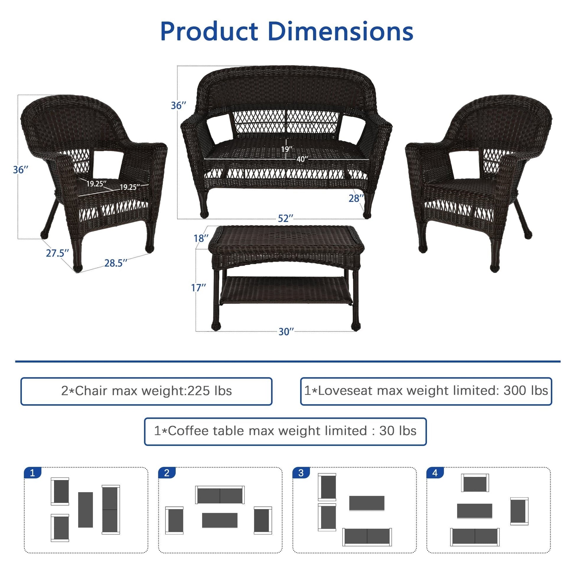 Wicker Patio 4-piece Conversation Set